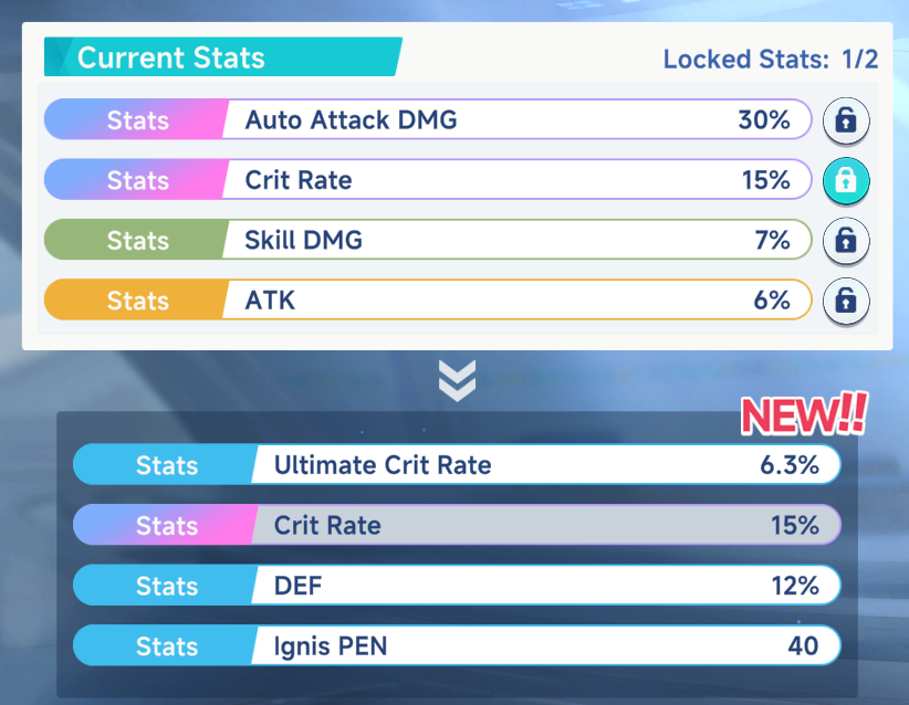>>552110752I got rainbow crit rate on Gerie during my huge amounts of rolls trying to get rainbow mark dmg. No rainbow pen sightings so far.Crit rate is almost as good as pen on Fuyucute, so I'm a little annoyed it didn't go to her