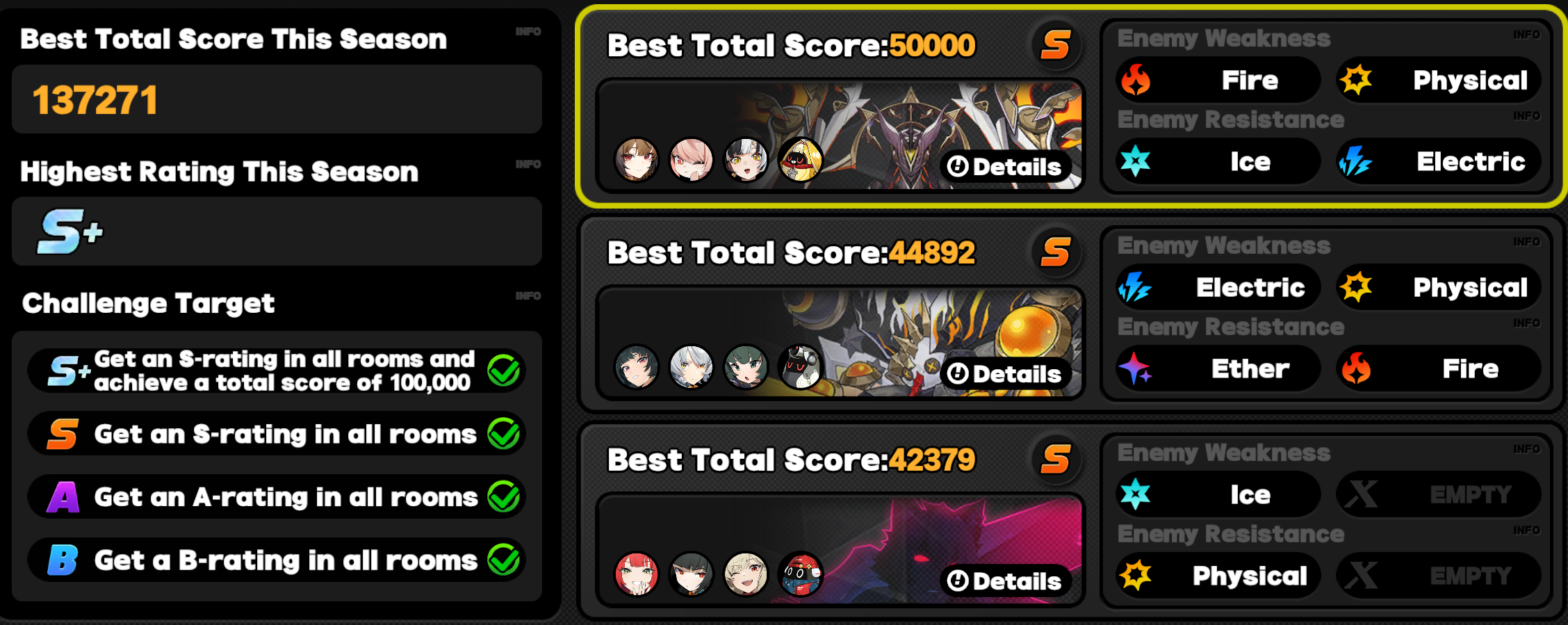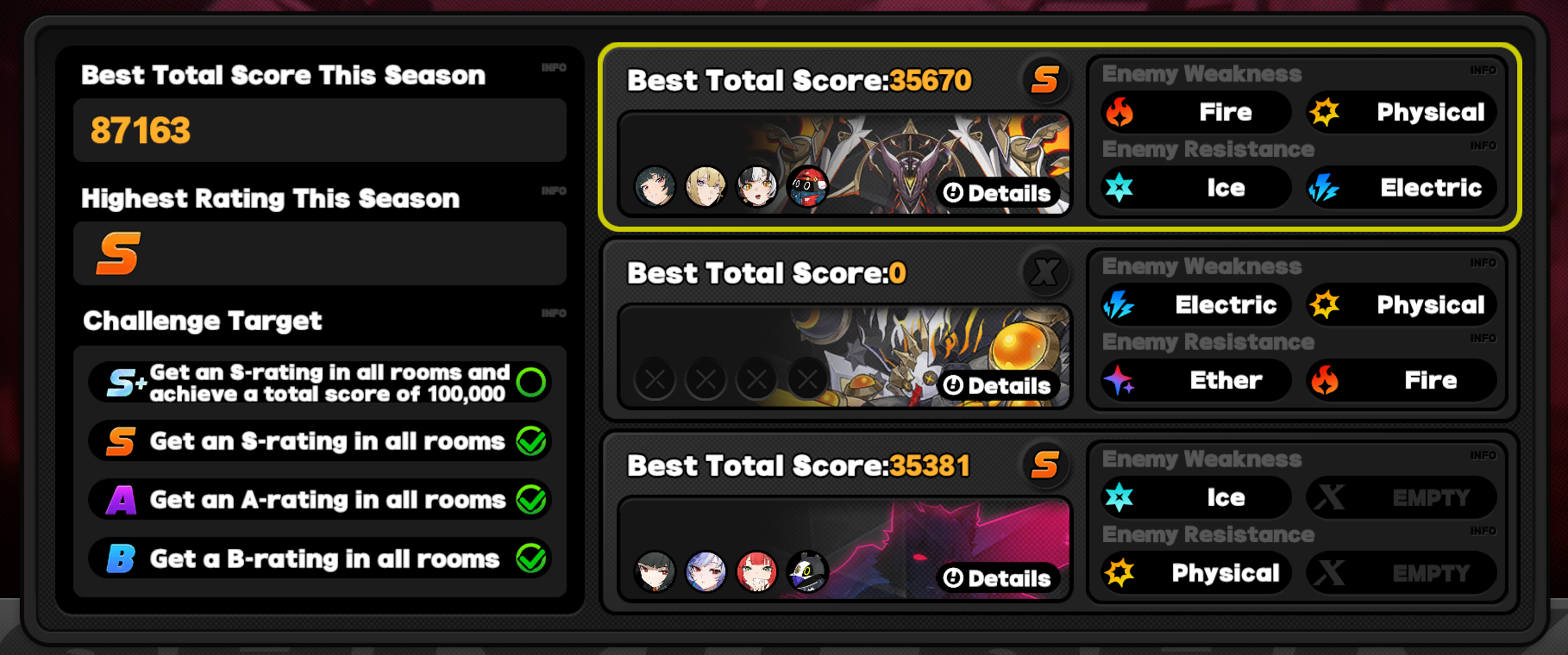 I got S Rank easy enough in SD but I can't get S+. Not when shifu sucks against these 3 bosses and yanagi + trigger is my only electric dps. I will get SANBY. I don't want Ye Shiguang