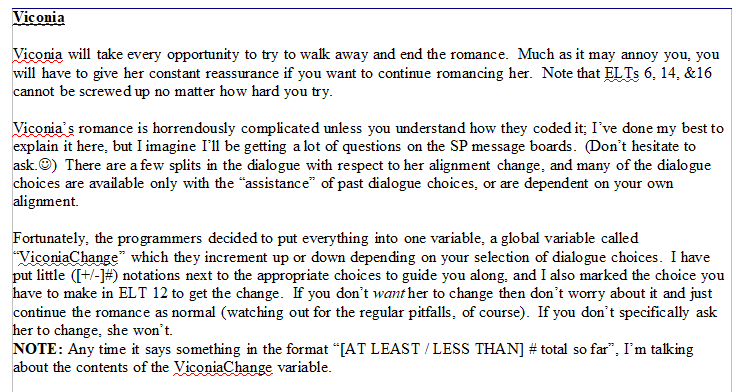 >>552104771Yep, that's from the page I was viewing earlier. I tried looking up ViconiaChange, and it said the variable does not exist.As far as I know, I did everything I needed to to get the good viconia ending. I let her down gently when she tried joining me in bed while distressed and anxious, then let her next time when she was more level headed. Then I got to the ending where she breaks up with me.