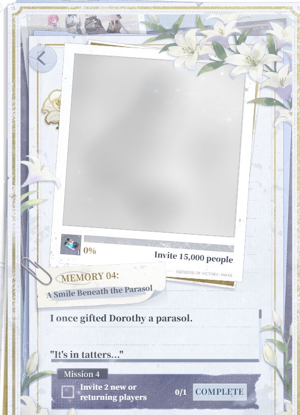>FlashbackeventSpeedread maxxingGive 1/5 rating and no spending>Basedmander/commanderless eventgive 1/5 and shit on survey while ticking the commander involvement option.As simple as that.Also freesia better not be commander surrogate mother or something. i'd rather her be a wife/nikke that commander can date. IDC if she is sixxo or female commander