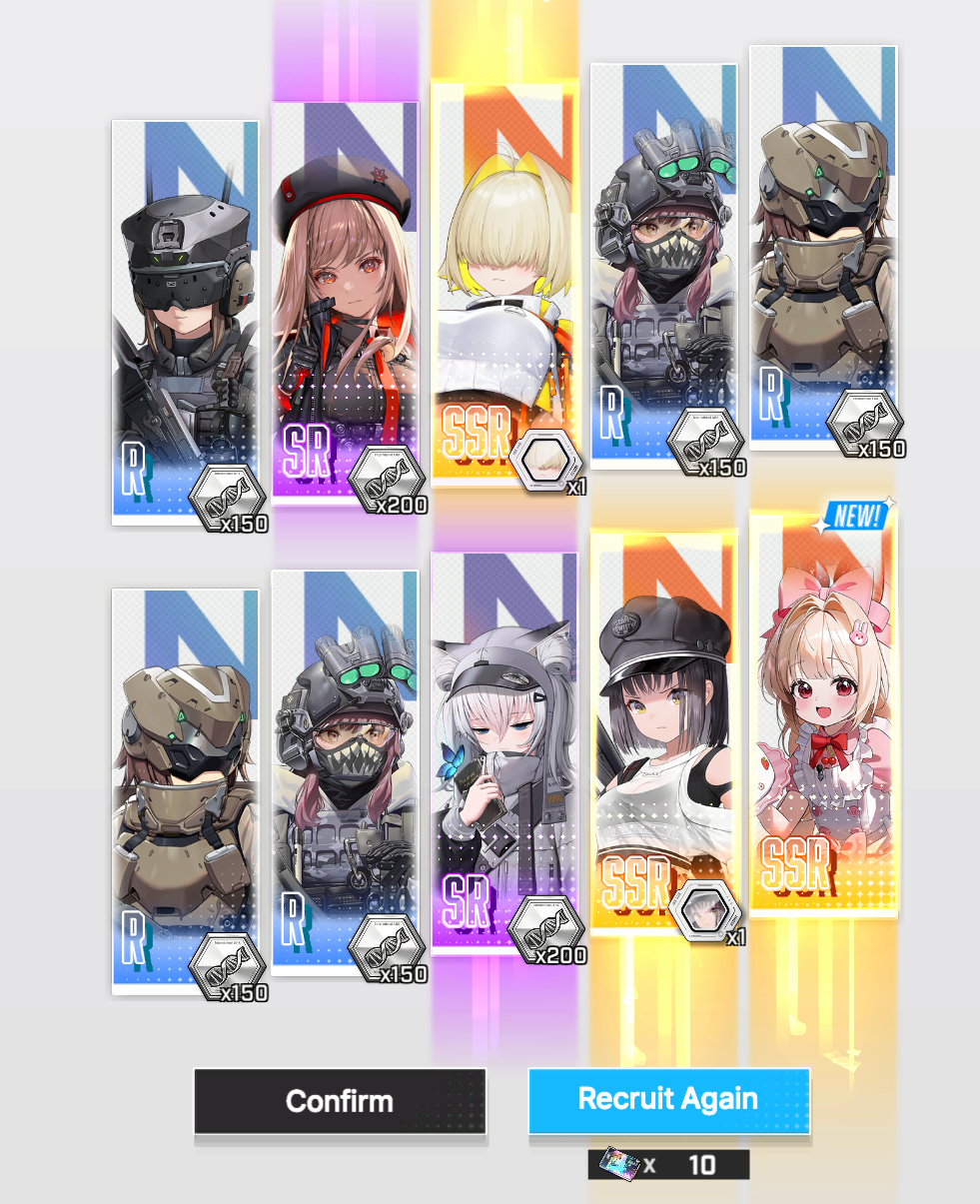 >Fuck it, I'll do one 10 pull before dipping into the golds>GOLD FLASH>No.>ONE SSR>I bet it's Laplace again...>Pic relatedHoly shit that was some luck. I hope it's a sign for the New Year.