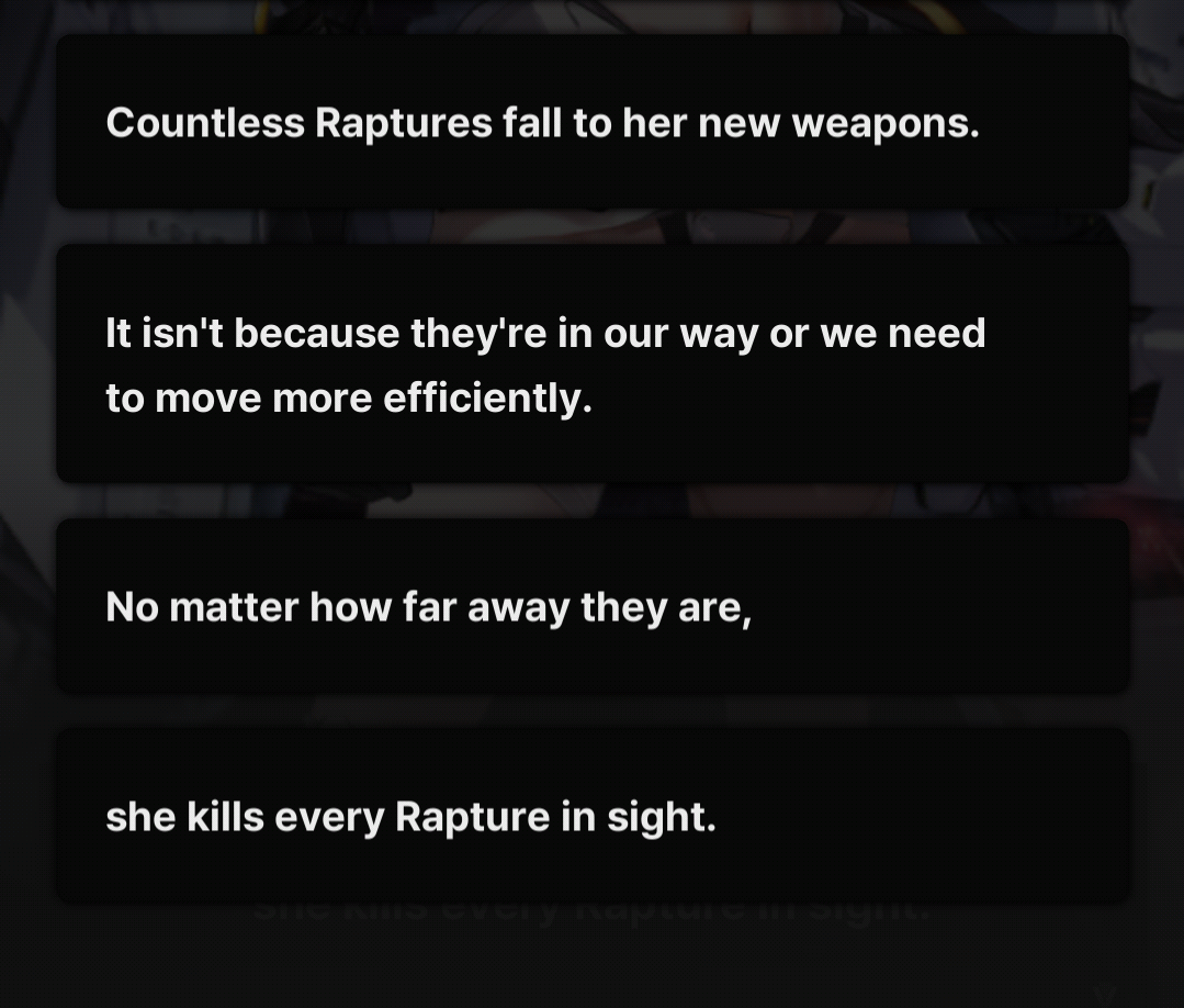 >>552106938it's ok, some parts really made me roll my eyes but i don't outright hate itit definitely improved when they made the decision to stuff those scenes post-chapter instead of switching between the surface and the ark before and after every combat node