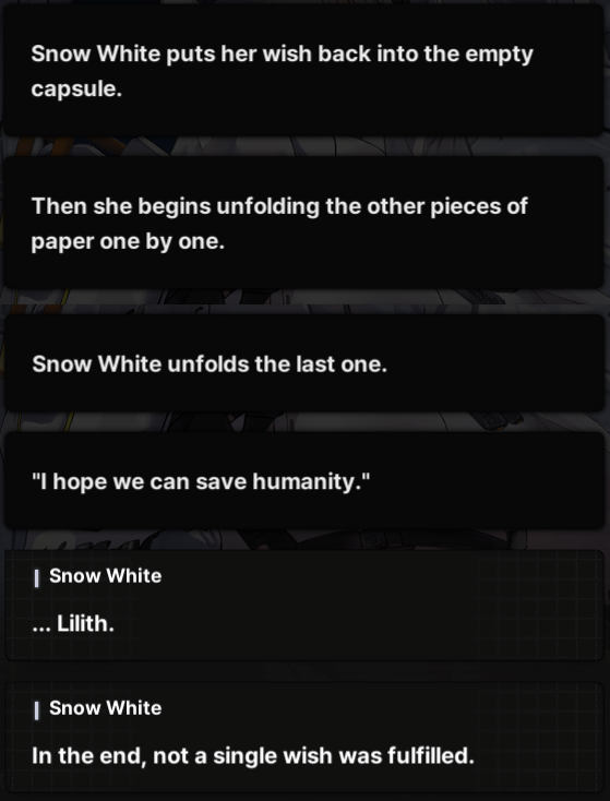>>552147402>Was expecting a scene where SKK and Snow White add new wishes to the box>They just walk awayok then