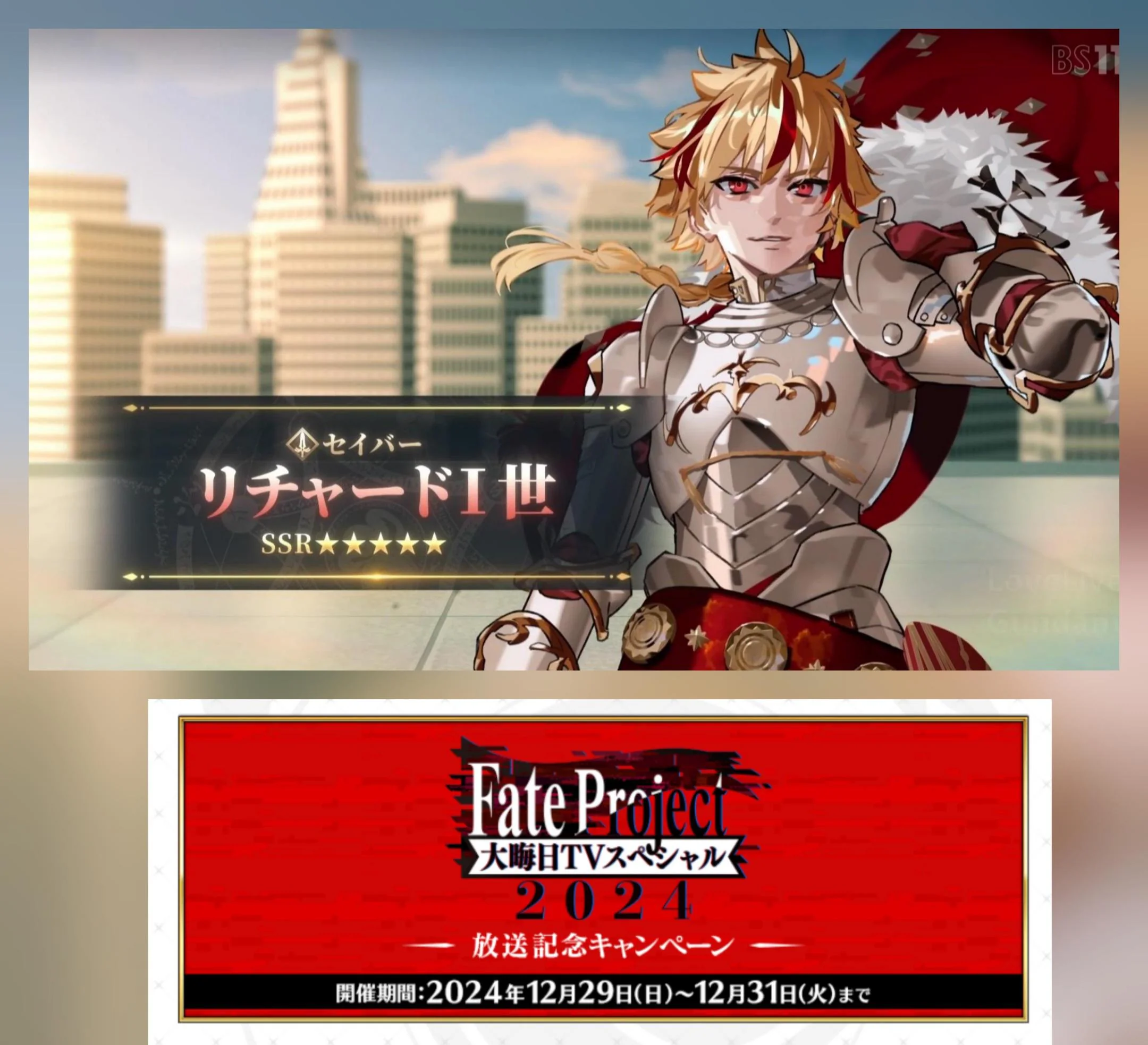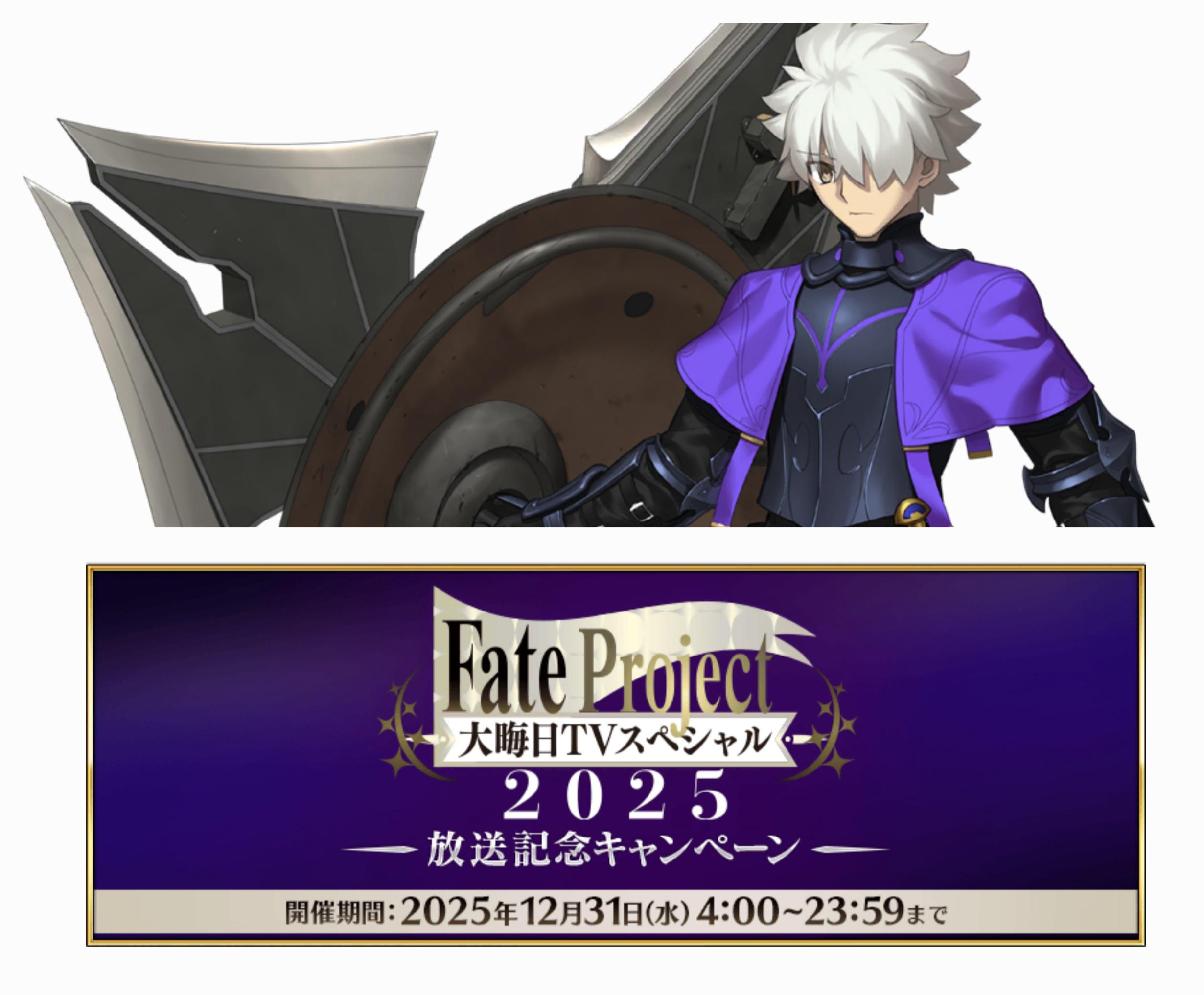 Previous: >>552079727>Fate Project New Year's Eve TV Special, F/GO 10-Year Journey -Beyond History-:●Broadcast Date: Wednesday December 31, 23:00 JST. ▶Login Bonus: 1 Summon Ticket.▶Broadcast Content: Interviews with people involved in the work and special guests.▶TV: TOKYO MX, BS11, GunmaTV and Tochigi-TV.▶Streaming: NicoNico, ABEMA.https://news.fate-go.jp/2025/tvspecial2025/>Part 2 Final Chapter:▶Requirements: Clear OC IV.▶The period to receive 1000 Saint Quartz has been extended until December 31 if you clear OC IV.https://news.fate-go.jp/2025/cil_final_chapter/>Part 2 Final Chapter Pre-Opening Campaign:●December 10~31 JST.▶All Servants:-Double the EXP when strengthening.-Chances of getting a Great/Super Success will▶Limited Master missions: 23 Stargazer's Teapots, 23 Golden Apples,12 Beast's Footprints and 5 Compass of Retrospection.▶Every servant will have 50% NP Charge at the start of any Main quest.https://news.fate-go.jp/2025/cil_final_chapter_cp/>All Servants PU summon:●December 10~31 JST.▶Every Servant of FGO will be on rotation for the rest of December.▶Extra Class:-31 JST.▶Artoria Pendragon (Lily), Oda Nobukatsu, Mary Anning, Habetrotand Kishinami Hakuno (M/F) will be featured in the FP gacha.https://news.fate-go.jp/2025/2025_all_pu/>/fgog/ Friendlist form and spreadsheet (2025):https://forms.gle/WK4dwSC6Mn2WQfZu8https://docs.google.com/spreadsheets/d/1leQ09m5klFajbCcededkANJfeMiAmVz-PbCI_r7xyXc/edit?usp=sharing>Utility links:https://pastebin.com/iaWmXAq7