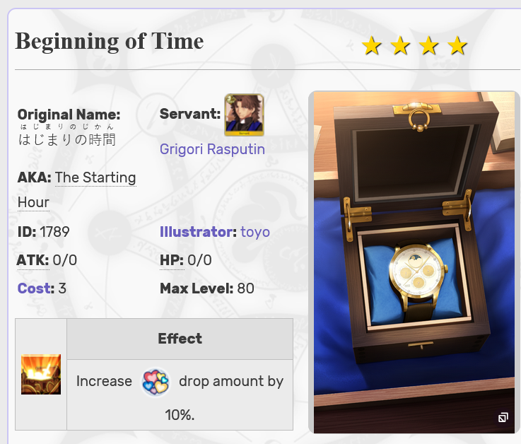 >Lord Logres>Bond CE: The End of Time>Increase ATK [10%] & apply Special Attack [Threat to Humanity] [15%] for all allies while Lord Logres is on the fieldThe Beginning and the End...What does it mean...?