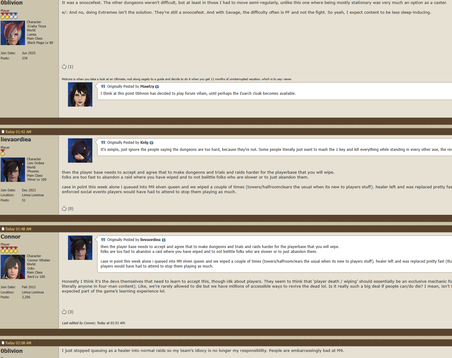 I love the officials>content is too easy now they need to make the game 10x harder or everyone will leave>I don't play casual content anymore because people keep wiping the groupevery time>inb4 goomba fallacysame person made the conflicting posts less than an hour apart