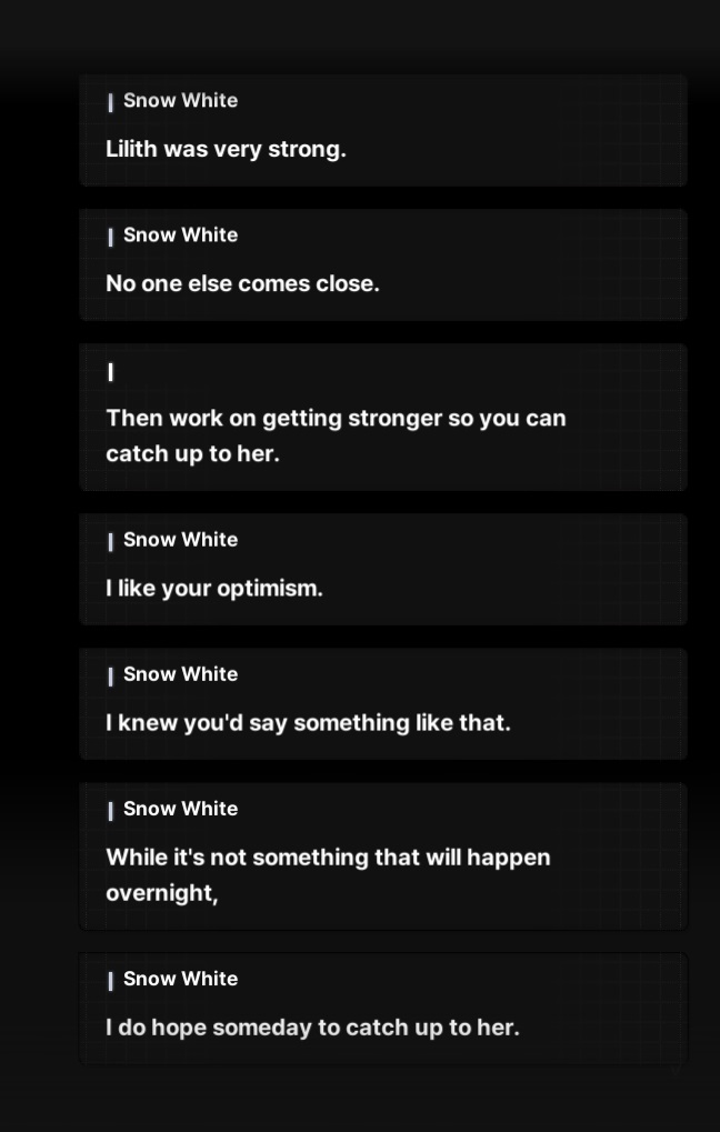 >>552188054She's boring for coomers, cool otherwise. Unlike RedHood, who is cool and hot. Snow White is like your younger sister. She's alright, but that's all.And that's OK. Not all nikkes should have whore aura around them.