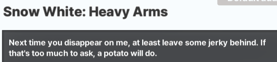 Why doesn't new Snow White have abs? She'd be hotter that way. Also does she want charge damage lines?