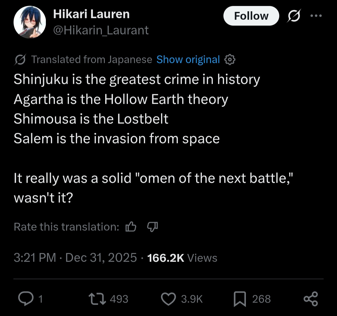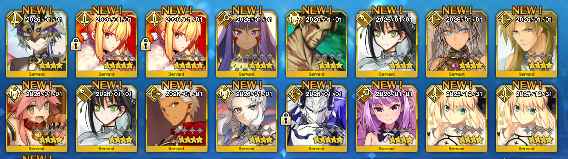 Previous: >>552189385>2026 New Year's Campaign:●January 1~15 JST.▶Present: 30 SQ, 20.26M QP and a Commemorative CE.>2026 New Year PU summon:●January 1~14 JST.5*Saber Lord Logres●January 3~5 JST.5*Pretender Phantasmoon4*Caster Miyu Edefelt●January 4~6 JST.5*Berserker Arjuna Alter4*Archer Aśvatthāman (story locked)●January 5~7 JST.5*Lancer Biscione4*Caster Daikokuten●January 6~8 JST.5*Archer Tutankhamun4*Caster Yui Shōsetsu●January 7~9 JST.5*Assassin Huyan Zhuo4*Avenger Xu fu●January 8~10 JST.5*Rider Takeda Shingen4*Berserker Nagakura Shinpachi●January 9~11 JST.5*Ruler Mélusine4*Archer UDK-BarghestAll limited.https://news.fate-go.jp/2026/newyear2026_pu/>/fgog/ Friendlist form and spreadsheet (2026):https://forms.gle/WK4dwSC6Mn2WQfZu8https://docs.google.com/spreadsheets/d/1leQ09m5klFajbCcededkANJfeMiAmVz-PbCI_r7xyXc/edit?usp=sharing>Utility links:https://pastebin.com/iaWmXAq7