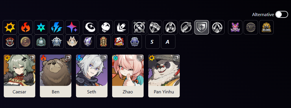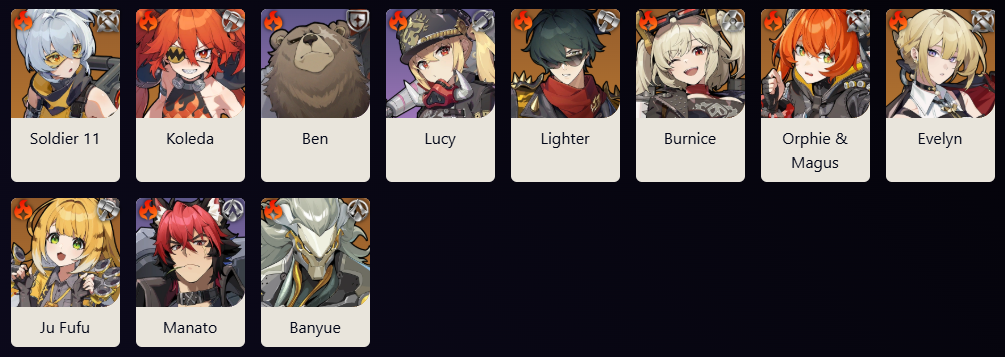 Sunna kit stc>ice support>800 atk buff to team>400 sheer bonus to team>200 anomaly proficiency to team>20% all element bonus to team>5% crit rate to team>10% crit dmg to team>wengine gives 30% ice dmg bonus and 20% ice res to team