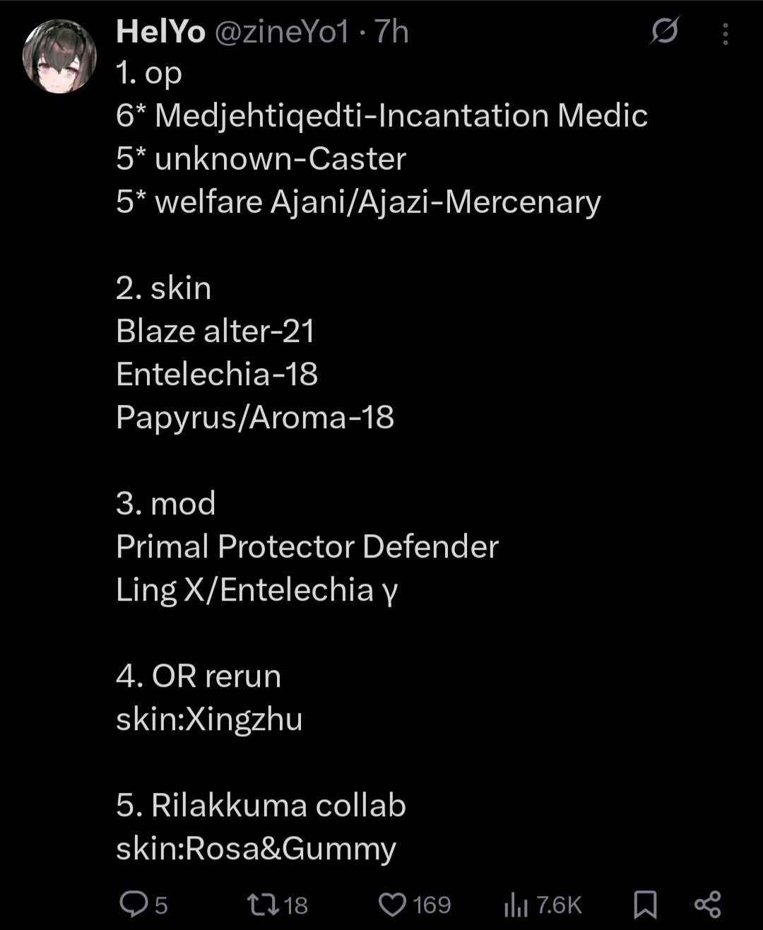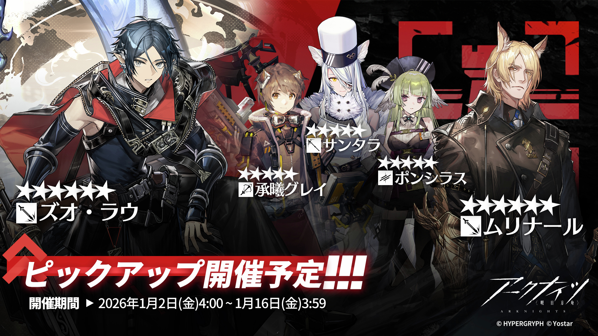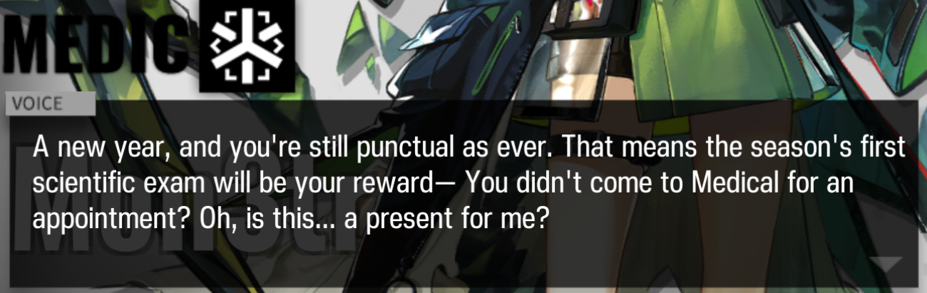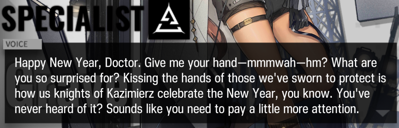 Previous thread: >>552213448Happy birthday Chongyue and Odda!>CURRENT, FUTURE GLOBAL/JP/KR CONTENT:[12/19-1/2][Standard]6* Caster Blaze the Igniting Spark, 6* Supporter Stainless (Shop), 5* Supporter Grain Buds, 5* Specialist Wulfenite, 5* Sniper Lunacub (Shop)[12/30-1/13][Kernel]6* Guard Silverash (Shop), 6* Supporter Suzuran, 5* Medic Silence (Shop), 5* Specialist Cliffheart, 5* Medic Ptilopsis[12/18-1/8]Arknights × Taiko no Tatsujin - Myrtle skin[12/23-1/20][Test Collection]Amiya, Rosmontis, Zuo Le[12/18]IS#6: Sui's Garden of Grotesqueries - 6* Supporter Raidian>CURRENT, FUTURE CN CONTENT:[1/1-1/15][Standard]6* Guard Leizi the Thunderbringer, 6* Guard Hoederer (Shop), 5* Specialist Tippi, 5* Supporter Proviso, 5* Guard Wind Chimes(Shop)[12/19-1/2]Exodus from the Pale Sea Rerun - Rose Salt skin[12/19-1/2][Confirmation, Conduction, Completion Rerun]6* Specialist Thorns the Lodestar, 5* Caster Tecno, 5* Specialist Almond[12/26-1/9]TFN#6 - Bubble skin>/akg/ website:https://akgcc.github.io>AK EN Database:https://puppiizsunniiz.github.io/AN-EN-Tags/akhrchars.html>More valuable resources:https://rentry.org/akg_resources>/akg/ merch guidehttps://rentry.co/akg_merch