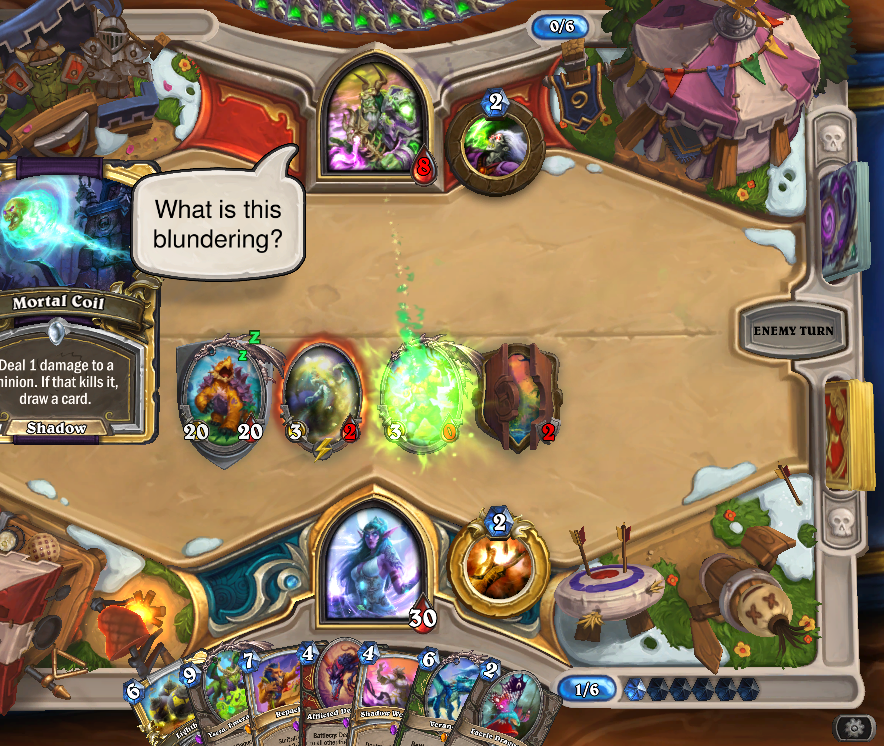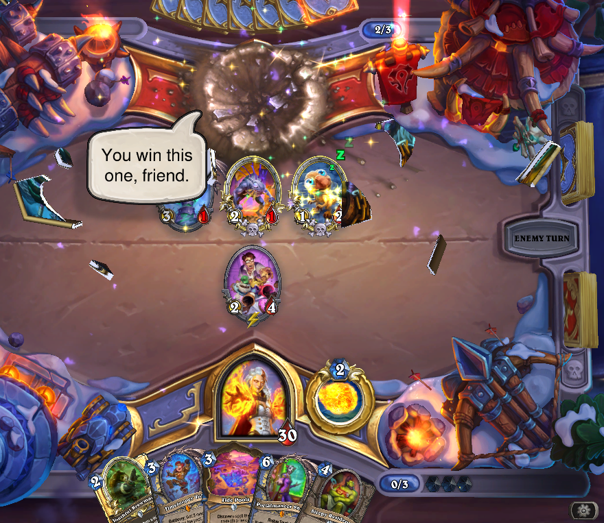 Having the funny combo in arena on turn 2 will win you every game unless they sre priesr