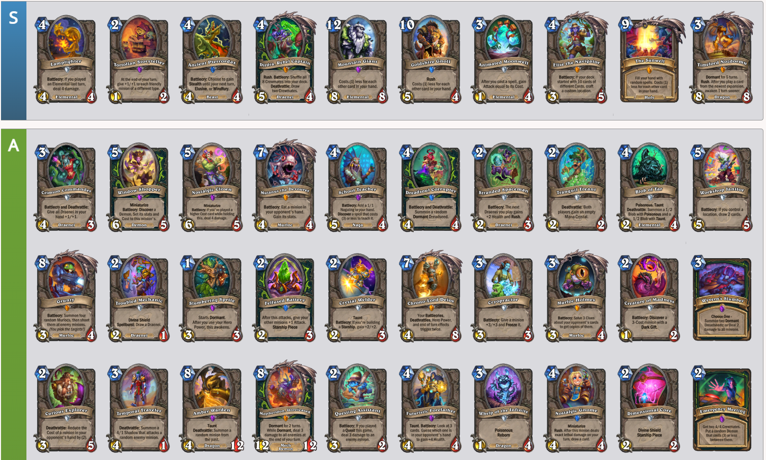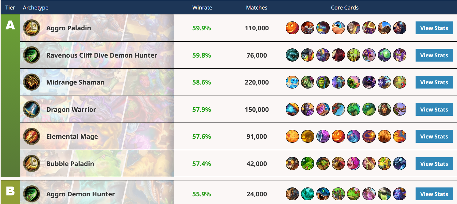https://hsreplay.net/meta/ – deck tier lists (bronze to gold)