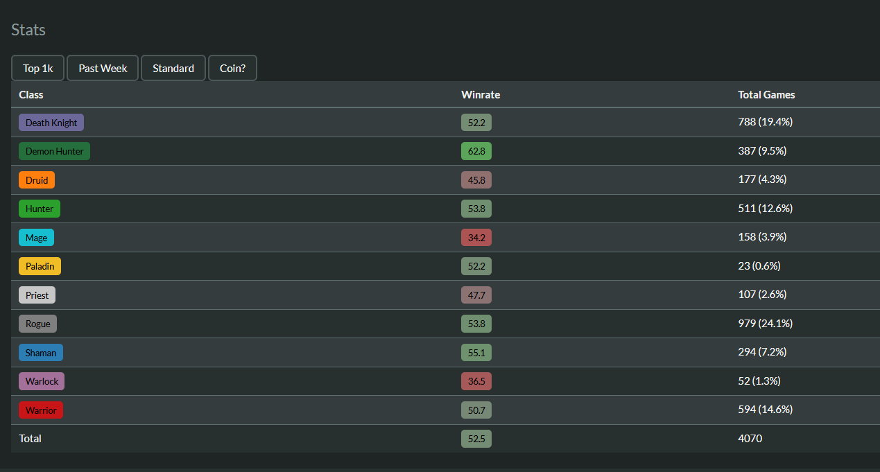 these are total stats so aggro decks tend to look a little stronger than they are due to running rampant in lower ranks