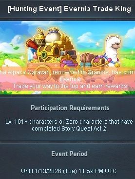 ya nah there's no update as far as I know until feb 4th, adversary just gets unlocked this week and there's a new event the week after the evernia in bloom giga grind event (everybody gets a giga eternal clockwork)it is silly because adversary came with part 1 of balancing patches in kms but uhhh go west we'll get them all at once maybe idk (hope u didnt replace ur buff duration ia on ur infinity class this 50% ia event)anyhoo there's a hyperburn soon so that'll be something to do, I saw this google doc with interesting info about every class in the game to help you pick a hyperburnhttps://docs.google.com/spreadsheets/d/1KTluHErW-57ha1LA3Pk6g7Gd2qPgbexiHjc989hV-mU/edit?usp=drivesdknot sure I agree with all their assessments but its not bad (typical blaze wizard slander)(be careful who u make fun of pre-balance patch)but also generally I'm surprised they don't put fire poison as a decent boss mule imo its very strong after balancing, maybe thats considering hexa investment which I'm not sure how good early investment is on there