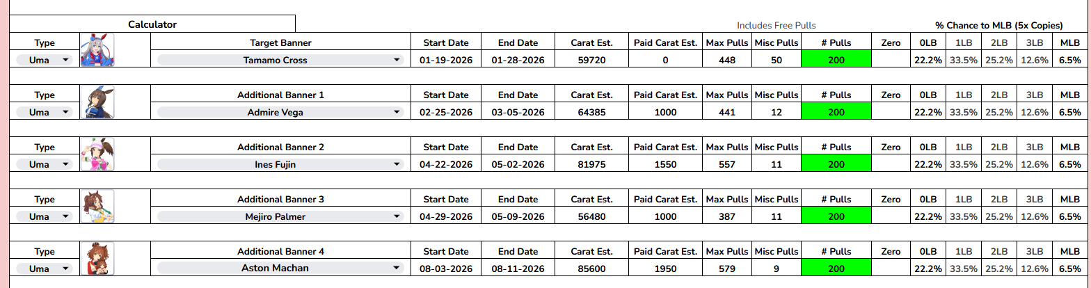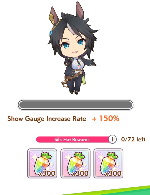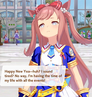 Previous: >>552263104>Global Game NewsLink your account to Cygames iDCurrent Scenario: Aoharu Hai aka "Unity Cup"Current CM: Scorpio Cup - Tokyo Turf 2000mCurrent Event: Fuji Kiseki ShowtimeCurrent Rate Up Trainee: Mejiro Dober 3*Current Rate Up Support Cards: Daitaku Helios (SSR), Vodka (SR)Late January - Sagittarius Cup - Nakayama Turf 2500mhttps://umamusume.com/news/100040/https://pages.snep.pw/uma/anni-skill-changes/>JP Game NewsCurrent Rate Up: NY Sakura Laurel 3*, NY Ikuno Dictus 3*, Oguri Cap 3* (Forma de Cinderella), Stay Gold 3*, Air Groove (Speed SSR), Fine Motion (Power SSR) Inari One (SSR), Mejiro Dober (SR)New Scenario "Yukoma Hot Spring" releasedTimeline: https://uma.moe/timelineCygames Webstore: https://webstore.cygames.com/en/umamusume_en/>IP NewsUmamusume Cinderella Gray 2nd season started weekly airings on 10/5>Thread Clubshttps://rentry.co/umaglobalclublistYou must be E3 (20k points) to join a circle. Apply with /uma/ or /vg/ in your profile or post ID in the thread.>All Guides & Resourceshttps://rentry.org/uma26Game databasehttps://gametora.com/umamusume (Click the gear to switch between JP / global server info)A basic guide for newfagshttps://rentry.org/umaglobalFind networks if your region is blocked from the game or clienthttps://www.umavpn.top/93Seiyuu & Concertshttps://rentry.org/umstUma Texthttps://umareader.idsmile.xyz/