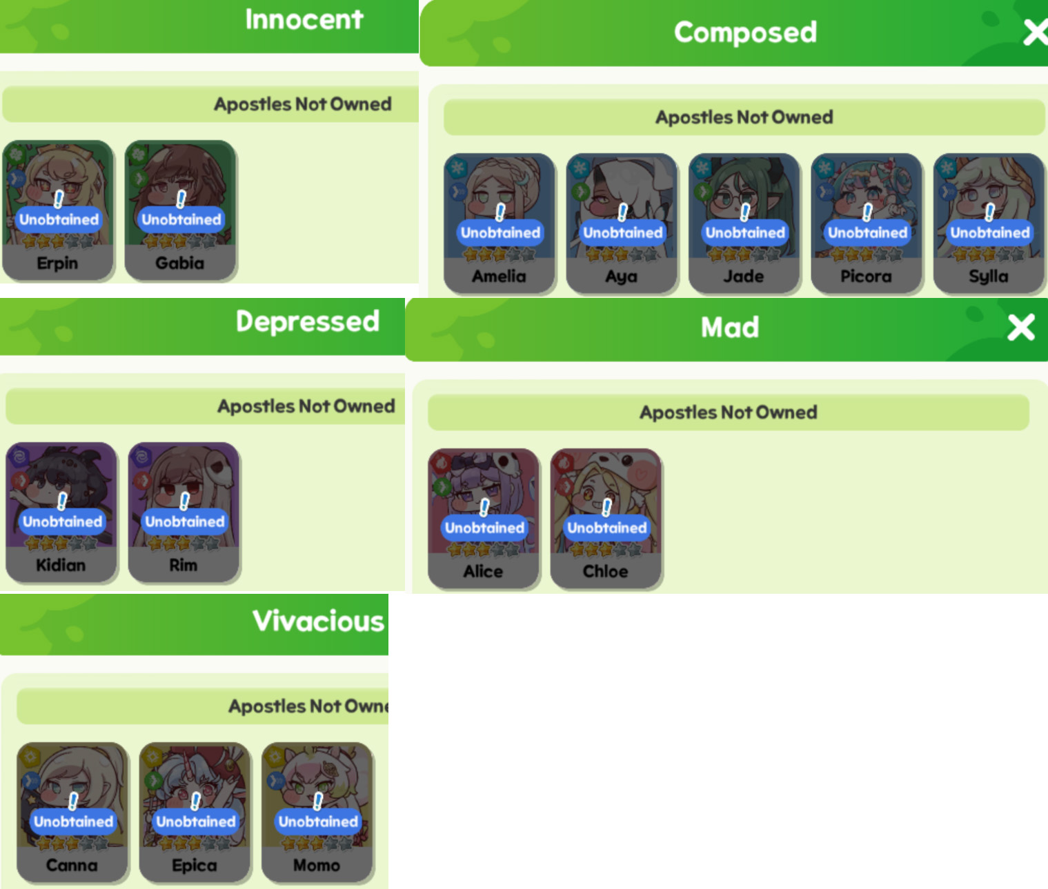Which element would you recommend to roll for? I'm finalizing my depressed (yes, I know that I didn't get Kidian yet) and looking to make a party for another.Mad or Innocent look pretty close.