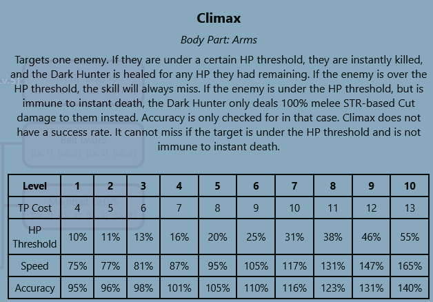 level 14floor 5landy is growing on me. boomerang axe alone to smack around the backrow is great, or using the line pierce smash to take a chunk from the frontrow and killing weaker enemies. stunning smash is also a good filler attackProt, DH, LandyHexer, TroubadourSoul Liberator is just fucking INSANE. i made a level 1 soul lib grimoire and gave it to the protector and its just wrecking shit. DH has rank4 and its hitting 400-600 damage depending on buffs/debuffs and resists and if its a non-sleep ailment or not.the multiple Charge10 grimoires i made last replay was worth it. action boost is not suitable for everything and for this team its more obvious. first turn charge/bard atk/torpor and second turn is a flurry is soul liberators or imbued normal attacks