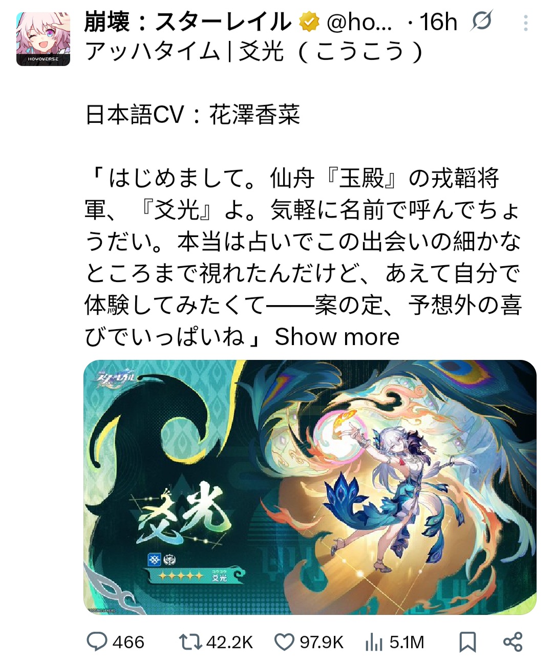 >>552302002Hanami leak better be fucking good. Yaoguang ain't it