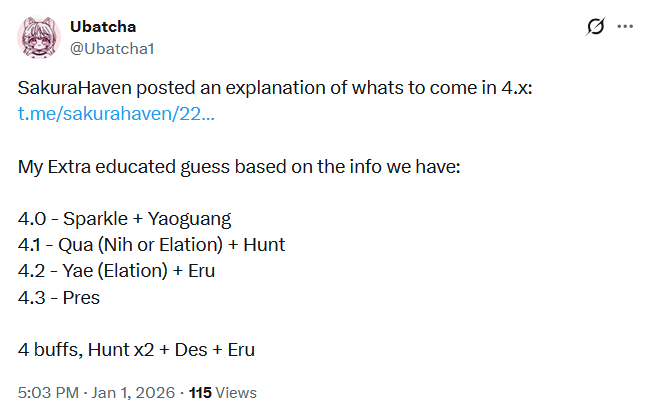To celebrate the glorious chink new year the buffs will go to Jing Yuan, DanIL, Feixiao, and Yanqing.