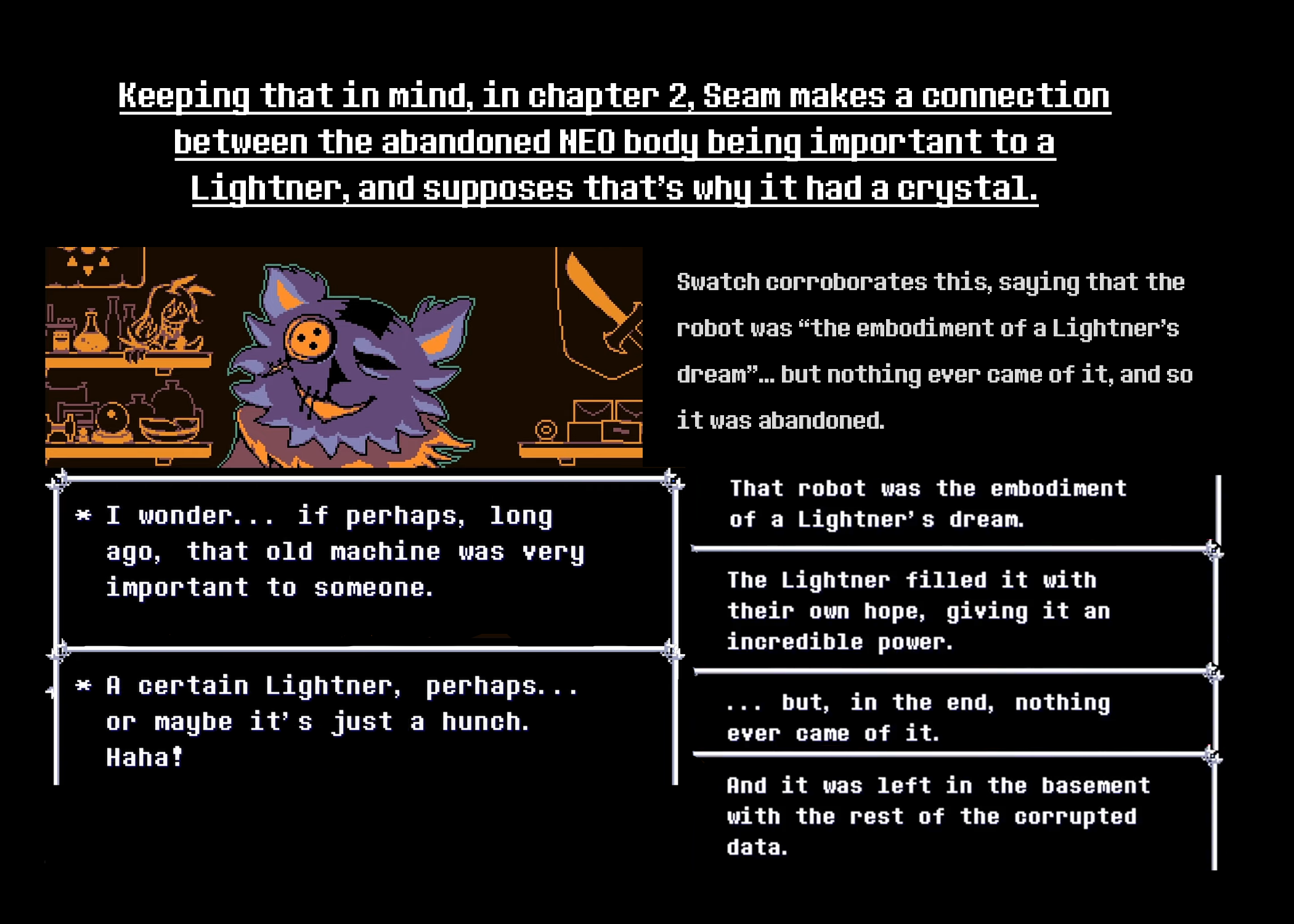 Papy new year edition Previous ?: >>552249920 Spoilers ahead, proceed at your own Frisk. -DELTARUNE CHAPTER 1-4 >https://store.steampowered.com/app/1671210/DELTARUNE/ -The Old Game >https://undertale.com -The Old Game's Demo >https://undertale.com/demo -The New Game >https://deltarune.com -The New Game's Progress >https://toby.fangamer.com/newsletters/winter2025/ >https://toby.fangamer.com/newsletters/ >https://deltarune.com/#news >https://www.twitlonger.com/show/n_1sqn3p9 -Merch >https://www.fangamer.com/collections/undertale >https://www.fangamer.com/collections/deltarune -Books -Undertale Artbook >https://pastebin.com/1MRmU0Gk -Legends of Localization - Undertale >https://pastebin.com/DkZaXMpi -Extra Content >https://undertaleqa.tumblr.com >https://undertale.com/alarmclock >https://deltarune.com/sweepstakes/ >https://toby.fangamer.com/newsletters/ -Undertale/Deltarune Text Dumps & Screenshots >https://pastebin.com/WG9u1fvH -Undertale Image Collections >https://pastebin.com/g2JqH6Ba -Booru (newly resurrected, please help tag) >https://utg.vidya.pics/ -Recommendbin >https://pastebin.com/fsqd5Sa6 -Writebins >Current: https://docs.google.com/document/d/1ZaYVvltQ_Rmf-ggszf1bwmYDW2NUcfpTYU7JzfyMhVE >Old: https://writebin.surge.sh -Comicbin >https://pastebin.com/UJpBYSEE -Fangamebin >https://archive.is/iSiFg -/vg/ League team >https://implyingrigged.info/wiki//utg/ -Current whiteboard: https://r9.whiteboardfox.com/95643208-4118-8229 -Previous whiteboard: https://r9.whiteboardfox.com/95625128-3137-6328 -Magma: https://magma.com/d/QiFH9rWyRh -WorldOfText: https://www.ourworldoftext.com/utg -Wanna change the font? >https://rentry.org/utg-font -Thread Template >https://pastebin.com/rTN8SxAw