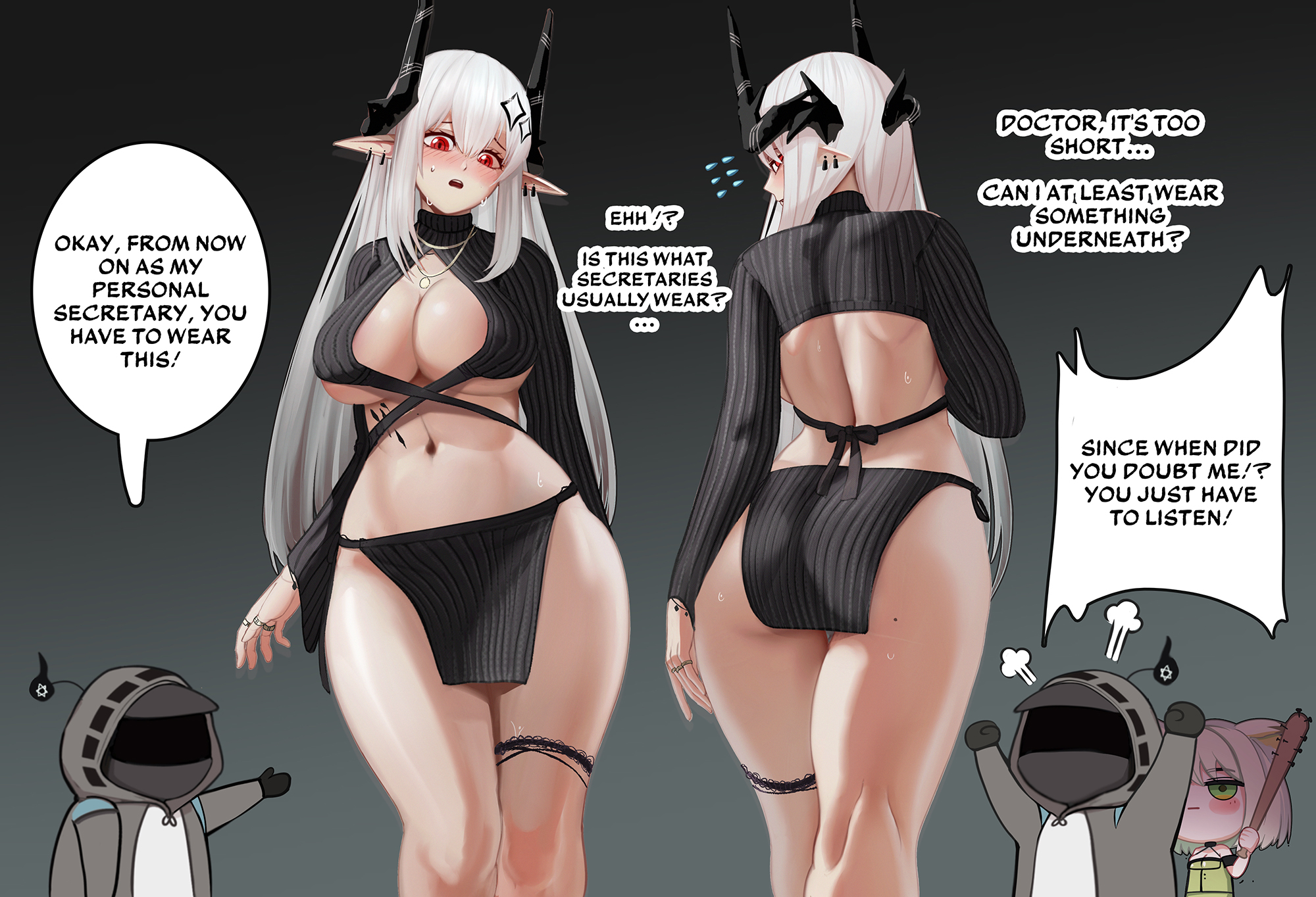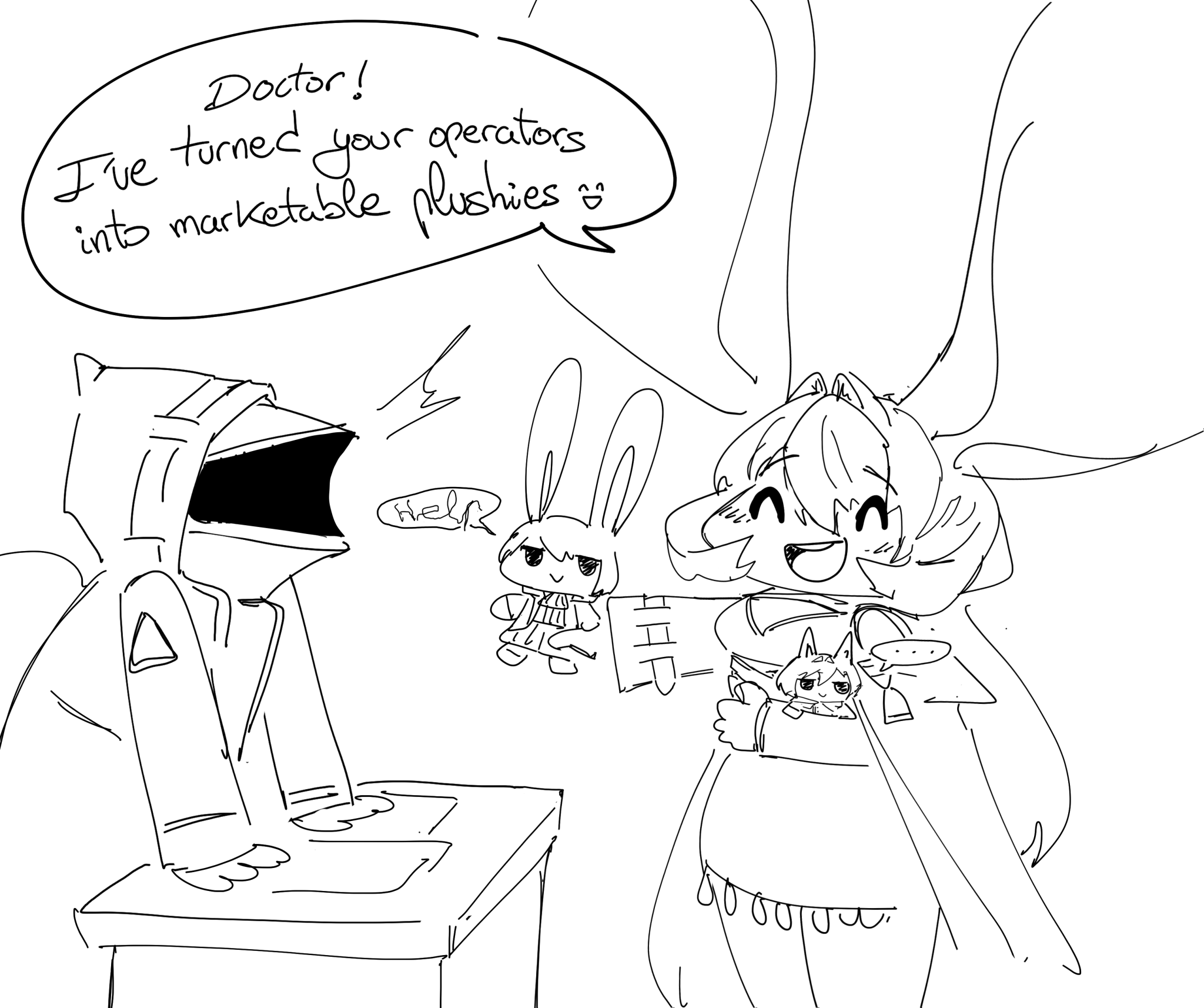 >>552330670I had to drag her away from her work.I want to see art of Doc and Ifrit dragging her away while she's still invested in reading something.