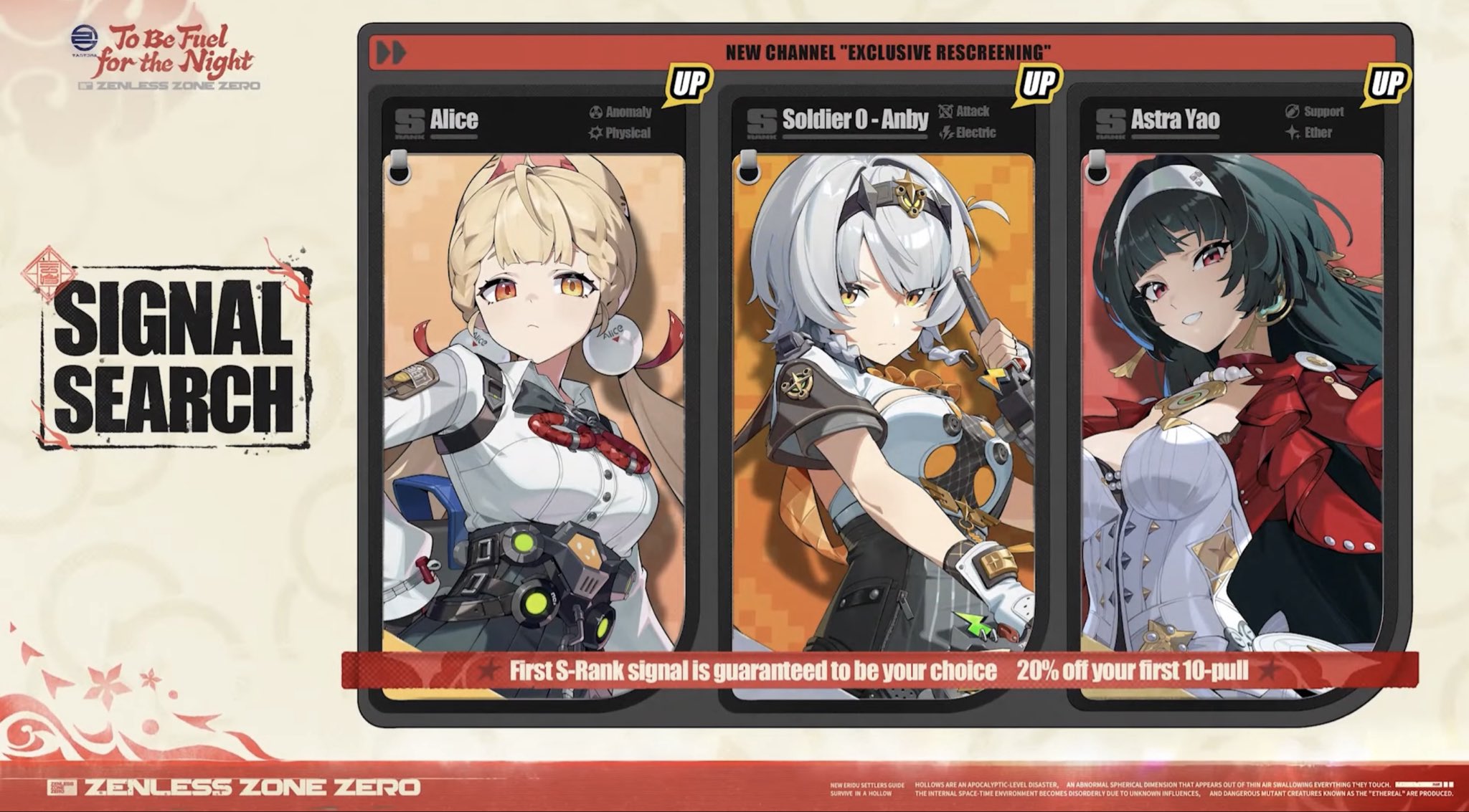 Previous: >>552378476>NewsAgent Record | Ariahttps://www.hoyolab.com/article/43039871Agent Record | Sunnahttps://www.hoyolab.com/article/43037944Version 2.5 Special Programhttps://youtu.be/Ldeqt2WMiYMTGA 2025 Special Videohttps://youtu.be/X-g1N9mNjzs>Newest Trailer/Teaser/Character demohttps://youtu.be/35fRoOYhE6Y (EN)https://youtu.be/BSKG5nhlj5s (JP)https://youtu.be/D_MtaEZRy3E (EN)https://youtu.be/eJBlfglfs-4 (JP)https://youtu.be/9Lshum4Peqw (EN)https://youtu.be/oCcNiUZ5ogU (JP)https://youtu.be/TU5Bt8MLPjk (EN)https://youtu.be/bviZmH3w5ew (JP)>Upcoming Events for 2.5https://zenless.hoyoverse.com/en-us/news/161728All-New Program 12/29 - 02/05Special Visitor 12/29 - 02/09Potential Hypothesis New Chapter Reforged 12/29 - 02/09Sword Seeker Chronicles 12/31 - 02/05Joint Investigation: The Divine Maze 01/03 - 01/22Shadow Riptide Clash 01/09 - 01/26Wish Filing Station 01/14 - 02/02Advanced Bounty: Area Patrol 01/16 - 01/21"En-Nah" Into Your Lap 01/21 - 02/05Angels and Delusions of Muse 01/21 - 02/05Data Bounty: Combat Simulation 01/30 - 02/04Angels of Delusion Training in Progress 01/30 - 02/09>Redeemable codes (claimable in-game or online)https://zenless.hoyoverse.com/redemptionZENLESSGIFTZZZCREATOR25ZZZ25MINAZHAOISFREE MEETTHEVOIDHUNTERShunguangWinterGiftZZZ2026>Resources and useful linkshttps://rentry.org/zzzlinkshttps://rentry.org/ZZZ-Friendshttps://rentry.org/ZZZ-Guilds>/zzz/ OP pastebin (use this if making new thread):https://pastebin.com/PzbMf13P