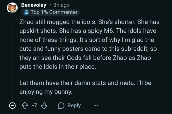 You should cut your dick off if you unironically pull for Aria as a man. Imagine your great-grandfather hunting and surviving through dangerous conditions, all so his great-grandson could end up a sissy playing with idol barbie gacha girls. YIKES!