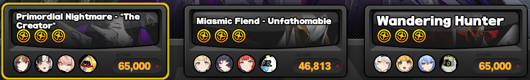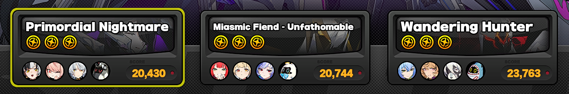 >>552408292>I’m already barely 20k right now.anon, there are solo clears of wandering hunter with banyue getting 20khow are you only getting 20k with a full team