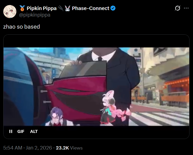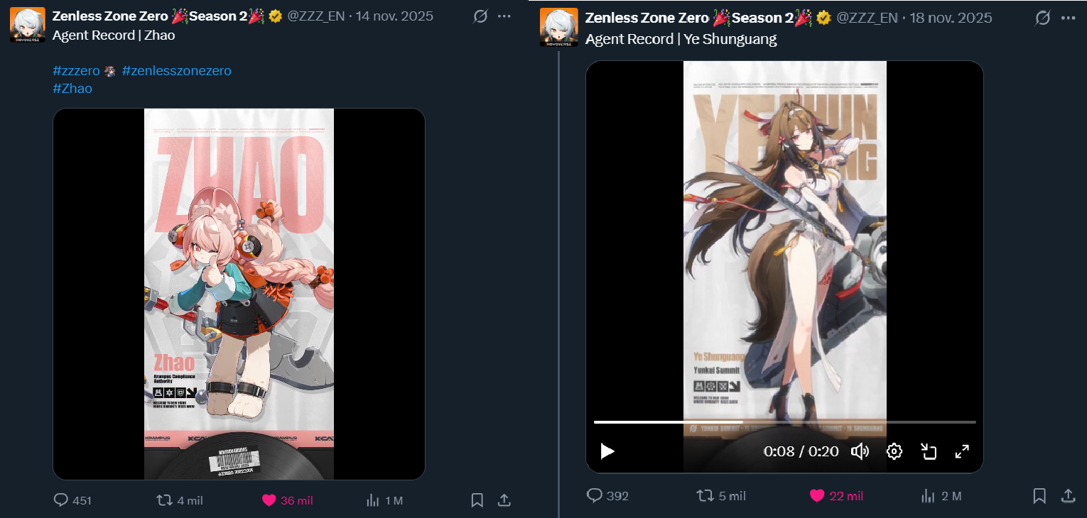Previous: >>552385510 >NewsAgent Record | Ariahttps://www.hoyolab.com/article/43039871Agent Record | Sunnahttps://www.hoyolab.com/article/43037944Version 2.5 Special Programhttps://youtu.be/Ldeqt2WMiYMTGA 2025 Special Videohttps://youtu.be/X-g1N9mNjzs >Newest Trailer/Teaser/Character demohttps://youtu.be/35fRoOYhE6Y (EN)https://youtu.be/BSKG5nhlj5s (JP)https://youtu.be/D_MtaEZRy3E (EN)https://youtu.be/eJBlfglfs-4 (JP)https://youtu.be/9Lshum4Peqw (EN)https://youtu.be/oCcNiUZ5ogU (JP)https://youtu.be/TU5Bt8MLPjk (EN)https://youtu.be/bviZmH3w5ew (JP) >Upcoming Events for 2.5https://zenless.hoyoverse.com/en-us/news/161728All-New Program 12/29 - 02/05Special Visitor 12/29 - 02/09Potential Hypothesis New Chapter Reforged 12/29 - 02/09Sword Seeker Chronicles 12/31 - 02/05Joint Investigation: The Divine Maze 01/03 - 01/22Shadow Riptide Clash 01/09 - 01/26Wish Filing Station 01/14 - 02/02Advanced Bounty: Area Patrol 01/16 - 01/21"En-Nah" Into Your Lap 01/21 - 02/05Angels and Delusions of Muse 01/21 - 02/05Data Bounty: Combat Simulation 01/30 - 02/04Angels of Delusion Training in Progress 01/30 - 02/09 >Redeemable codes (claimable in-game or online)https://zenless.hoyoverse.com/redemptionZENLESSGIFTZZZCREATOR25ZZZ25MINAZHAOISFREE MEETTHEVOIDHUNTERShunguangWinterGiftZZZ2026 >Resources and useful linkshttps://rentry.org/zzzlinkshttps://rentry.org/ZZZ-Friendshttps://rentry.org/ZZZ-Guilds >/zzz/ OP pastebin (use this if making new thread): https://pastebin.com/PzbMf13P