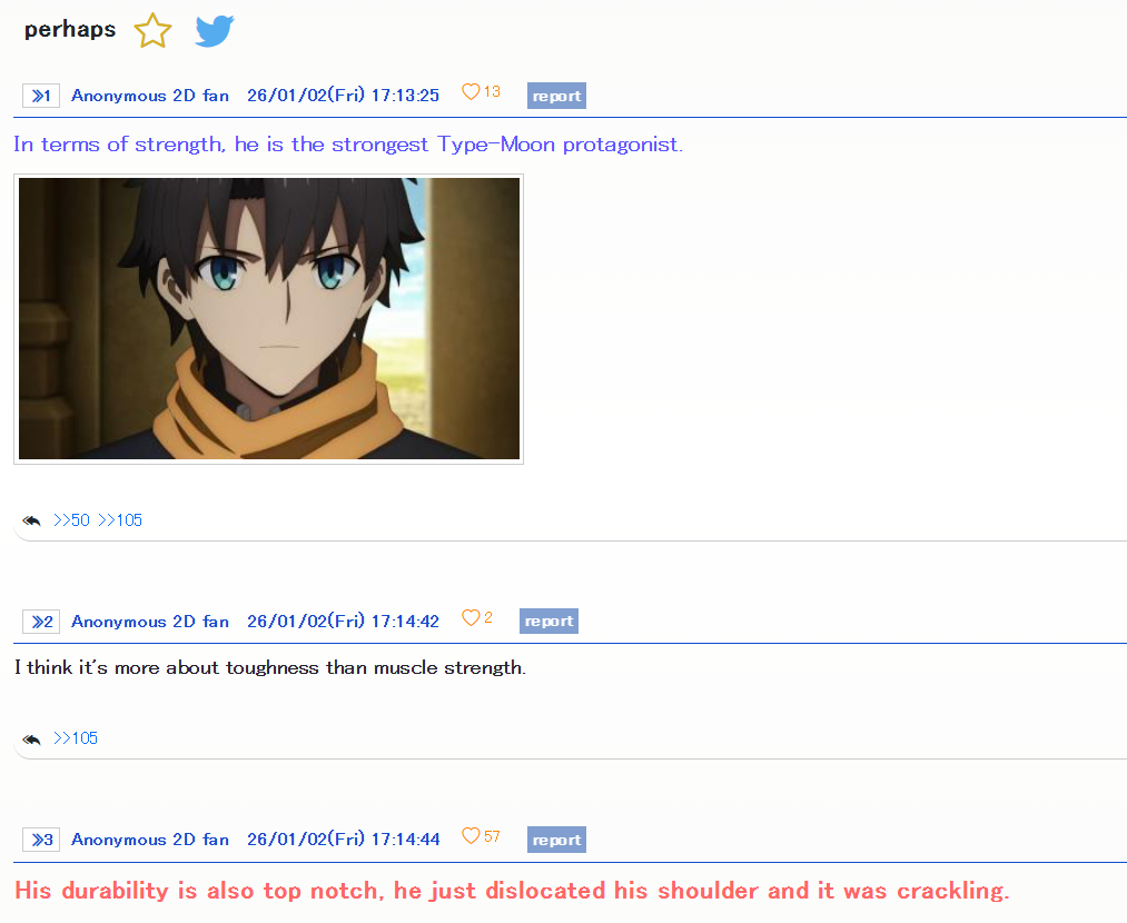 >>552400568I can't believe the Strange/Fake anime is the reason we will never get anime adaptations of the more well received LBs.