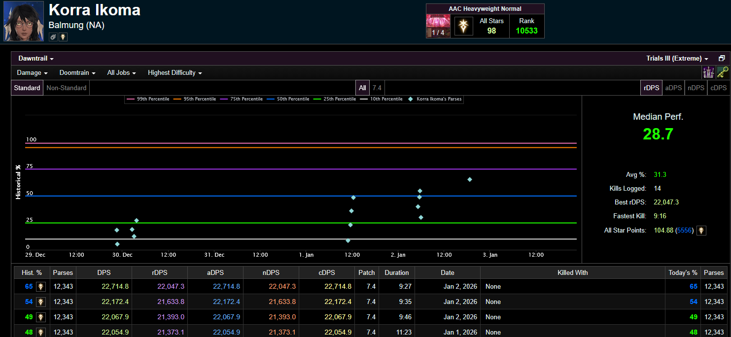 Stop being a shitter and be capable of not dying in normal mode content, then eventually get good DPS, then start clearing EX and savage content