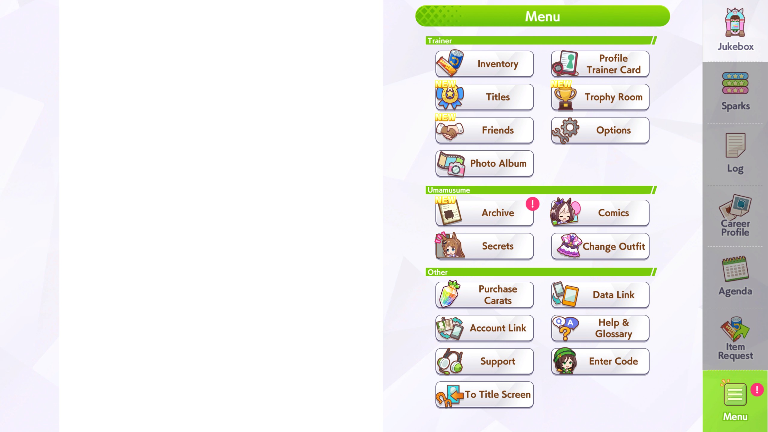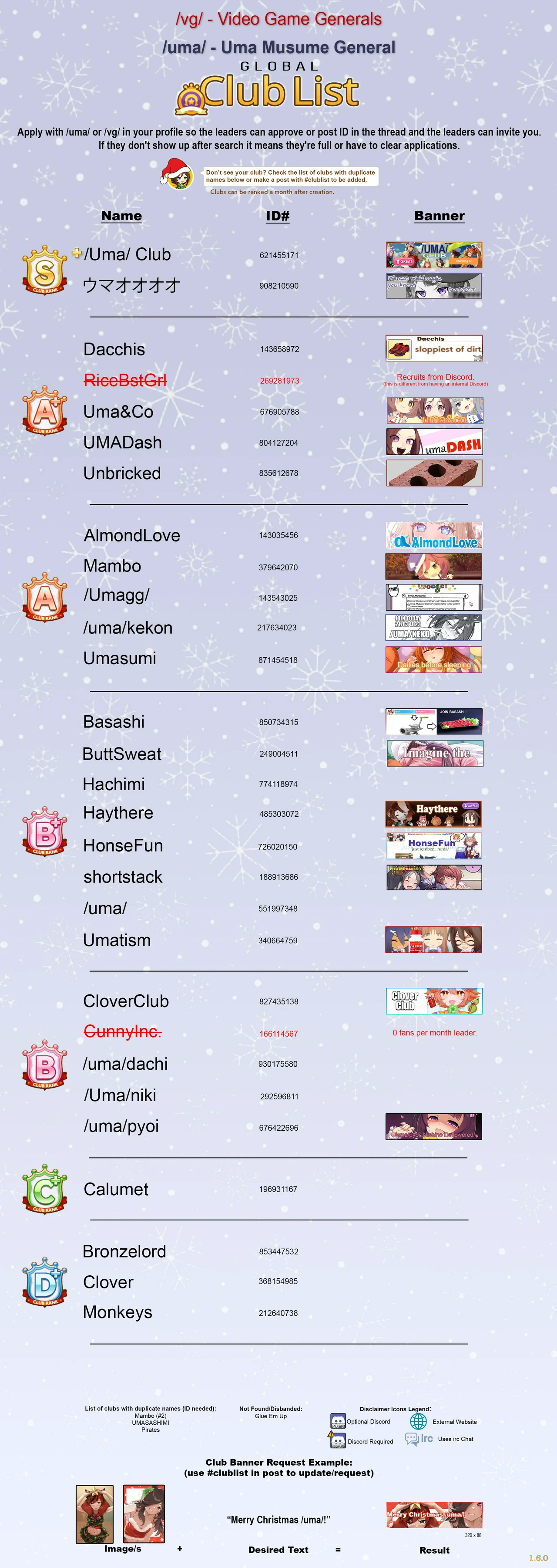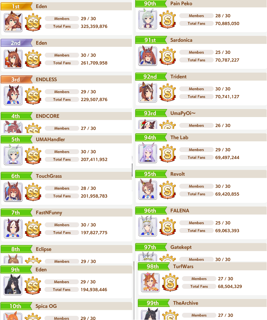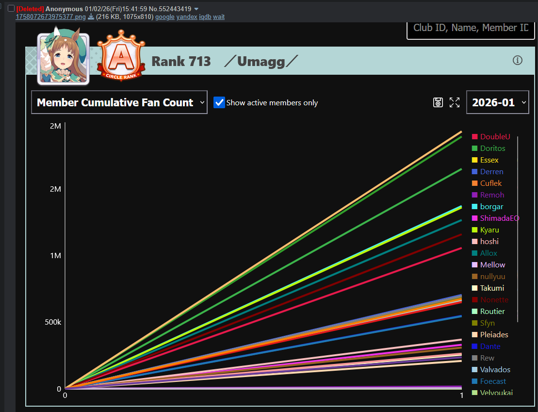 Previous: >>552419797>Global Game NewsLink your account to Cygames iDCurrent Scenario: Aoharu Hai aka "Unity Cup"Current CM: Scorpio Cup - Tokyo Turf 2000mCurrent Event: Fuji Kiseki ShowtimeCurrent Rate Up Trainee: Mejiro Dober 3*Current Rate Up Support Cards: Daitaku Helios (SSR), Vodka (SR)Late January - Sagittarius Cup - Nakayama Turf 2500mhttps://umamusume.com/news/100040/https://pages.snep.pw/uma/anni-skill-changes/>JP Game NewsCurrent Rate Up: NY Sakura Laurel 3*, NY Ikuno Dictus 3*, Oguri Cap 3* (Forma de Cinderella), Stay Gold 3*, Air Groove (Speed SSR), Fine Motion (Power SSR) Inari One (SSR), Mejiro Dober (SR)New Scenario "Yukoma Hot Spring" releasedTimeline: https://uma.moe/timelineCygames Webstore: https://webstore.cygames.com/en/umamusume_en/>IP NewsUmamusume Cinderella Gray 2nd season started weekly airings on 10/5>Thread Clubshttps://rentry.co/umaglobalclublistYou must be E3 (20k points) to join a circle. Apply with /uma/ or /vg/ in your profile or post ID in the thread.>All Guides & Resourceshttps://rentry.org/uma26Game databasehttps://gametora.com/umamusume (Click the gear to switch between JP / global server info)A basic guide for newfagshttps://rentry.org/umaglobalFind networks if your region is blocked from the game or clienthttps://www.umavpn.top/93Seiyuu & Concertshttps://rentry.org/umstUma Texthttps://umareader.idsmile.xyz/