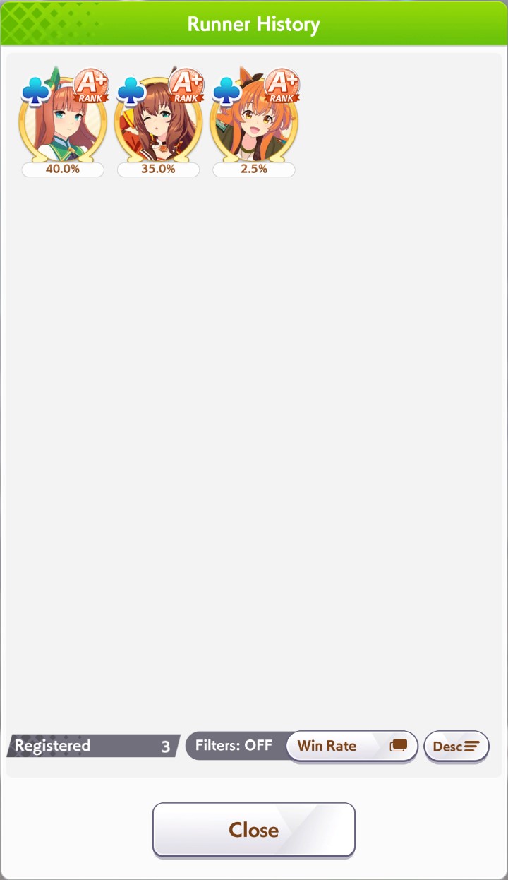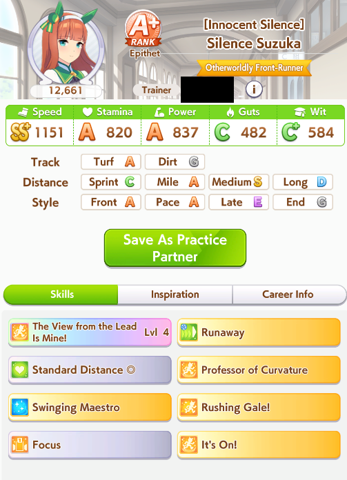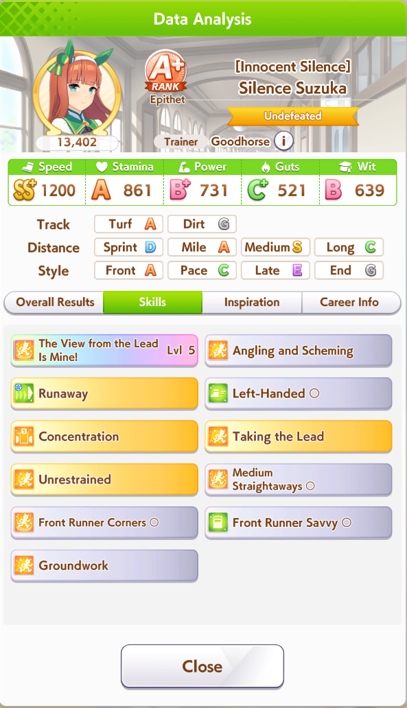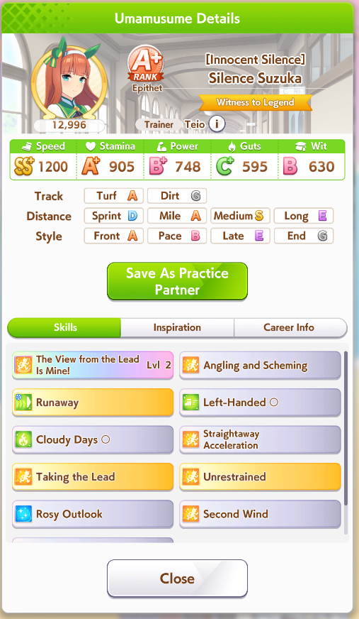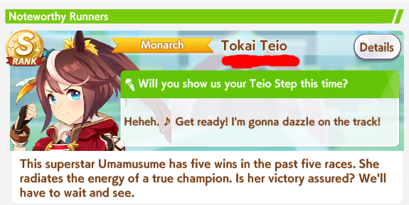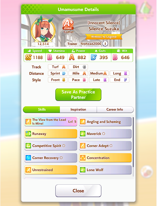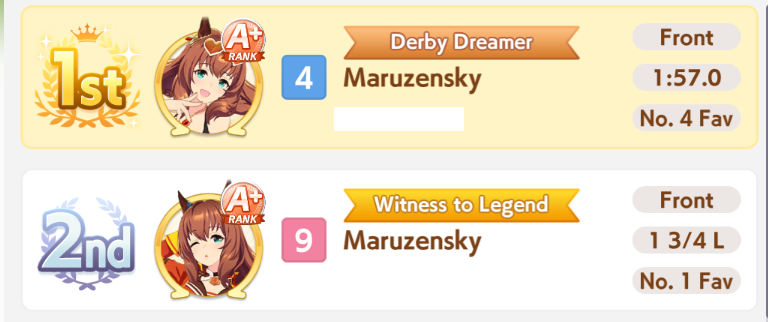 >>552450562A possibility is brining Dominator+Hesitant front runner+their own SuzukaEven a Pace+Suzuka can reach a win if they activate Shooting for Victory