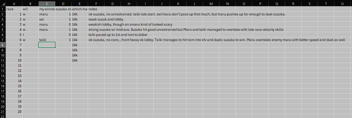 >>552449914Lobby composition matters. Regular Maru is a good choice for when your Suzuka gases out due to a second Suzuka, if you're just running fronts without niges she's not as good.