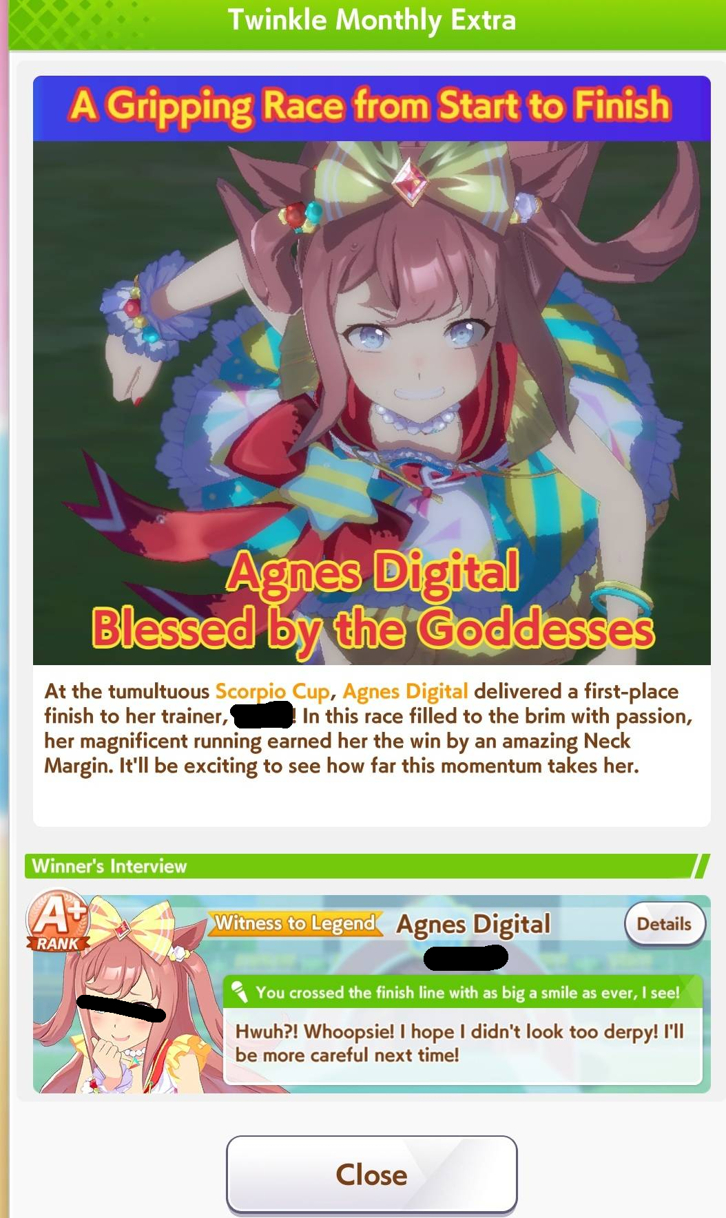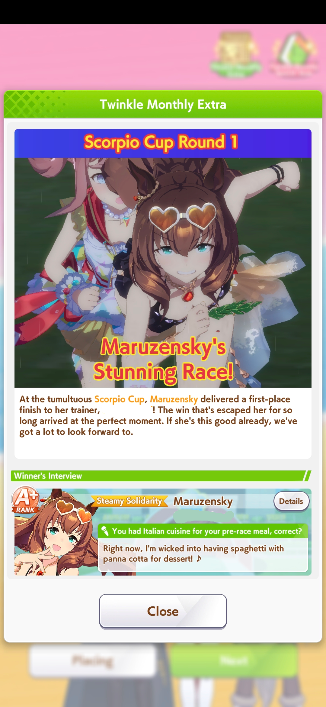 I’m happy my Neicha has been getting wins this CM