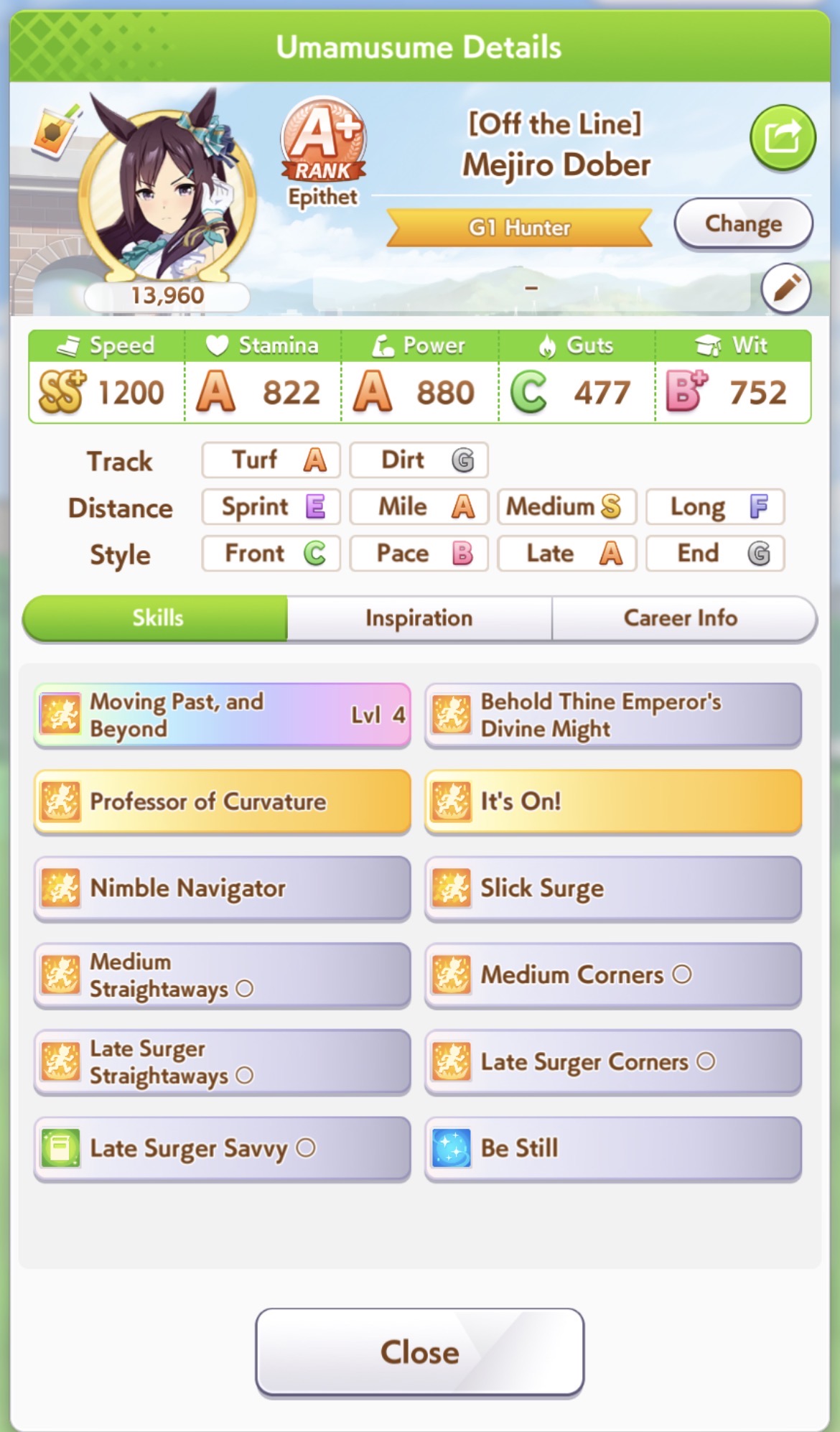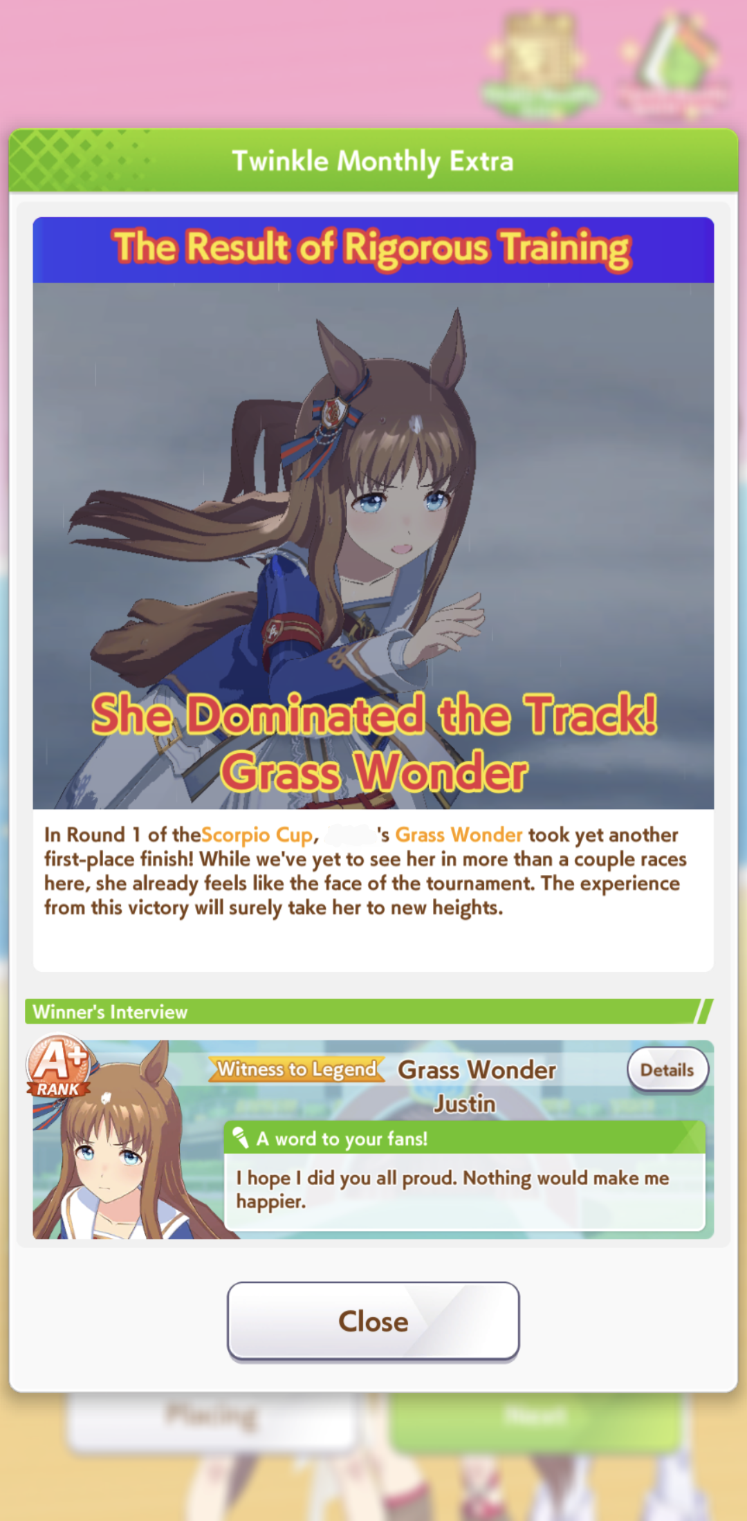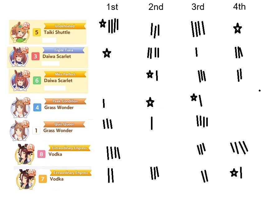 >>552449921I run her with triple lates to increase the chances of her getting at least 6th, so you can still keep Grass Wonder in your team