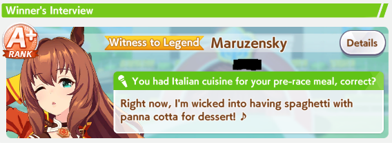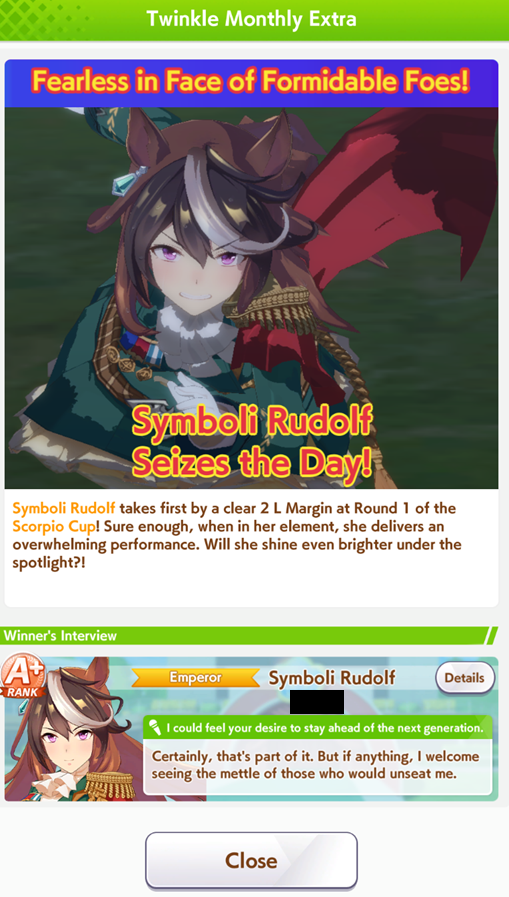 Previous: >>552419797>Global Game NewsLink your account to Cygames iDCurrent Scenario: Aoharu Hai aka "Unity Cup"Current CM: Scorpio Cup - Tokyo Turf 2000mCurrent Event: Fuji Kiseki ShowtimeCurrent Rate Up Trainee: Mejiro Dober 3*Current Rate Up Support Cards: Daitaku Helios (SSR), Vodka (SR)Late January - Sagittarius Cup - Nakayama Turf 2500mhttps://umamusume.com/news/100040/https://pages.snep.pw/uma/anni-skill-changes/>JP Game NewsCurrent Rate Up: NY Sakura Laurel 3*, NY Ikuno Dictus 3*, Oguri Cap 3* (Forma de Cinderella), Stay Gold 3*, Air Groove (Speed SSR), Fine Motion (Power SSR) Inari One (SSR), Mejiro Dober (SR)New Scenario "Yukoma Hot Spring" releasedTimeline: https://uma.moe/timelineCygames Webstore: https://webstore.cygames.com/en/umamusume_en/>IP NewsUmamusume Cinderella Gray 2nd season started weekly airings on 10/5>Thread Clubshttps://rentry.co/umaglobalclublistYou must be E3 (20k points) to join a circle. Apply with /uma/ or /vg/ in your profile or post ID in the thread.>All Guides & Resourceshttps://rentry.org/uma26Game databasehttps://gametora.com/umamusume (Click the gear to switch between JP / global server info)A basic guide for newfagshttps://rentry.org/umaglobalFind networks if your region is blocked from the game or clienthttps://www.umavpn.top/93Seiyuu & Concertshttps://rentry.org/umstUma Texthttps://umareader.idsmile.xyz/