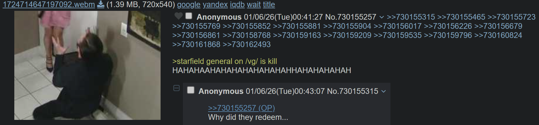 >>552637975He doesn’t even shitpost here anymore, he just drops by from time to time to post a Louis tiktok edit