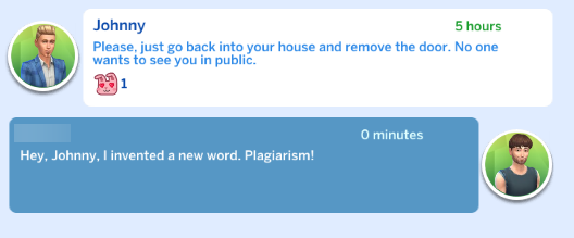 >>552574721>dressing up other townies in Era approved outfitsLast thing you want is some townie on the phone wearing an astronaut helmet walking onto your medieval lot like they own the place