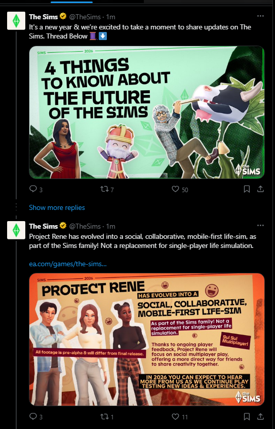 >>553238103>>553238764>>553239018Leaks are basically confirmed.they're shitting out a new single player game by late 2026, but until that moment they'll keep adding content to Sims 4 (the Royalty last EP and some kits)