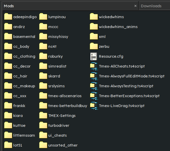 >>553275141Organizing by creator is fucking retarded since Sims 4 only reads script files one folder deep, meaning all your script mods would be in a big fucking mess in each folder, rather than neatly tucked in their own folders where they're also really effortless to update. Organizing your CC by type is reasonable, but mods should simply not be organized.