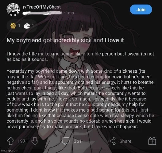 >>552883282Hajime peeped on Mahiru and Hiyoko taking a shower. Hajime has the capacity to grope a sick Ibuki especially if there is a chance she won't remember it.