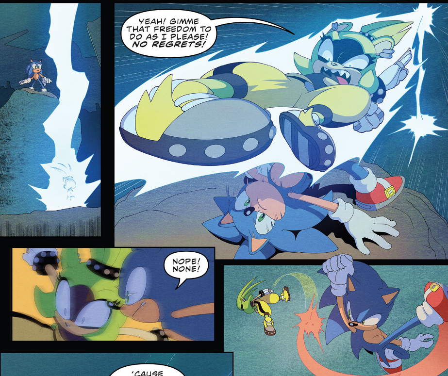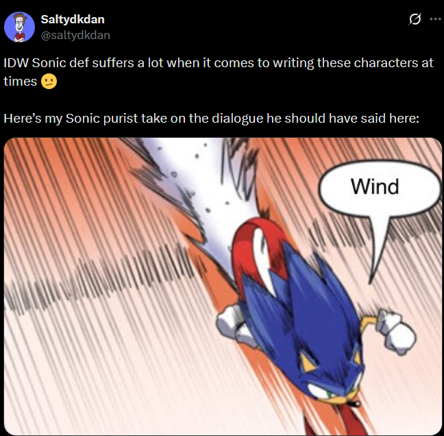 You guys want to notice something weird that you'll never be able to unsee?You can argue about characterization all you want but Ian recently does this thing where every character talks the way he would. They say things like "I can respect that" in an argument (He has reused this line seven times) or talk in memespeak. It's like how evan adds a little bit of therapyspeak to everything.The thing is this didn't happen in Archie. In the preboot Ian didn't write Sonic like that, he wrote Sonic as a stereotypical jock teenager.