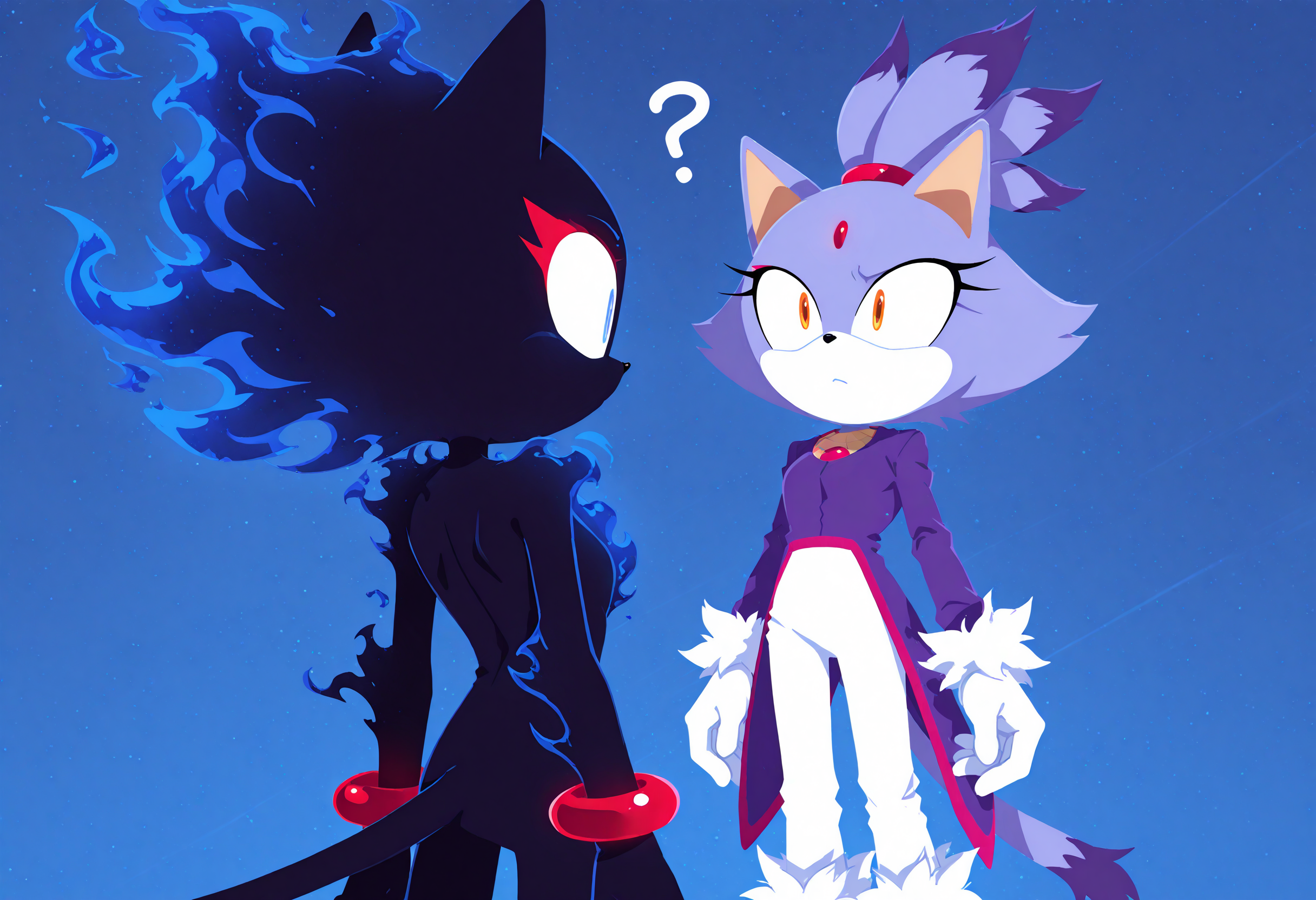 >>552655029I personally like the idea of Blaze taming Iblis, and Silver being corrupted by Mephiles who is trying to find Iblis again