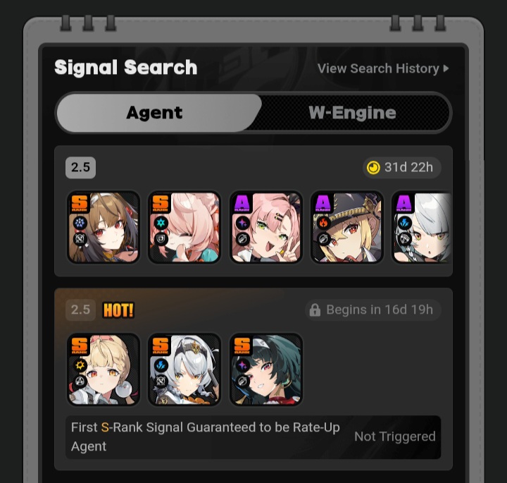 Previous: >>552629761>NewsAgent Record | Ariahttps://www.hoyolab.com/article/43039871Agent Record | Sunnahttps://www.hoyolab.com/article/43037944Version 2.5 Special Programhttps://youtu.be/Ldeqt2WMiYMTGA 2025 Special Videohttps://youtu.be/X-g1N9mNjzs>Newest Trailer/Teaser/Character demohttps://youtu.be/35fRoOYhE6Y (EN)https://youtu.be/BSKG5nhlj5s (JP)https://youtu.be/D_MtaEZRy3E (EN)https://youtu.be/eJBlfglfs-4 (JP)https://youtu.be/9Lshum4Peqw (EN)https://youtu.be/oCcNiUZ5ogU (JP)https://youtu.be/TU5Bt8MLPjk (EN)https://youtu.be/bviZmH3w5ew (JP)>Upcoming Events for 2.5https://zenless.hoyoverse.com/en-us/news/161728All-New Program 12/29 - 02/05Special Visitor 12/29 - 02/09Potential Hypothesis New Chapter Reforged 12/29 - 02/09Sword Seeker Chronicles 12/31 - 02/05Joint Investigation: The Divine Maze 01/03 - 01/22Shadow Riptide Clash 01/09 - 01/26Wish Filing Station 01/14 - 02/02Advanced Bounty: Area Patrol 01/16 - 01/21"En-Nah" Into Your Lap 01/21 - 02/05Angels and Delusions of Muse 01/21 - 02/05Data Bounty: Combat Simulation 01/30 - 02/04Angels of Delusion Training in Progress 01/30 - 02/09>Redeemable codes (claimable in-game or online)https://zenless.hoyoverse.com/redemptionZENLESSGIFTZZZCREATOR25ZZZ25MINAZHAOISFREEMEETTHEVOIDHUNTERShunguangWinterGiftZZZ2026>Resources and useful linkshttps://rentry.org/zzzlinkshttps://rentry.org/ZZZ-Friendshttps://rentry.org/ZZZ-Guilds>/zzz/ OP pastebin (use this if making new thread):https://pastebin.com/PzbMf13P