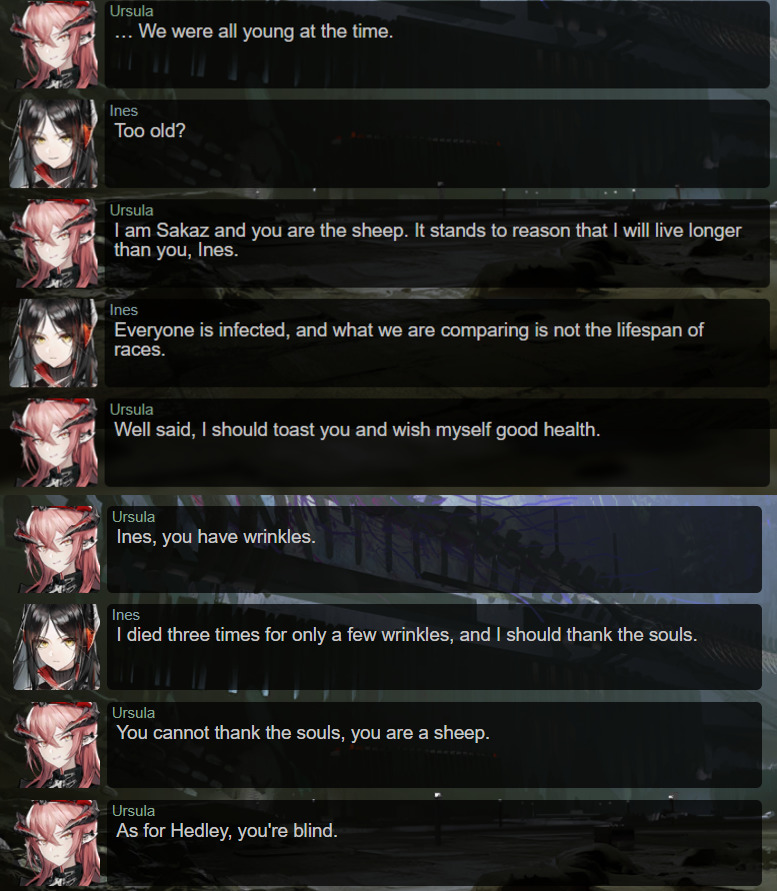 >>552683696>I kinda like shipping characters and I think it's cute that stainless and her hang out so much, I usually get put off when the girls in one of these gachas fawn over the MC to the point the rest of the planet/cast might as well not exist. I rather they have more organic relationships between themselves.not the game for that. Arknights isn't about romance at all, and it's also a gacha. You're basically going to the desert and looking for water. Even the two biggest shiptbaits in the game, Ines/Hoer and Yato/Noir, after all the years Arknights was a game, were never canonized. HG left it at "old fucks that are close coworkers".