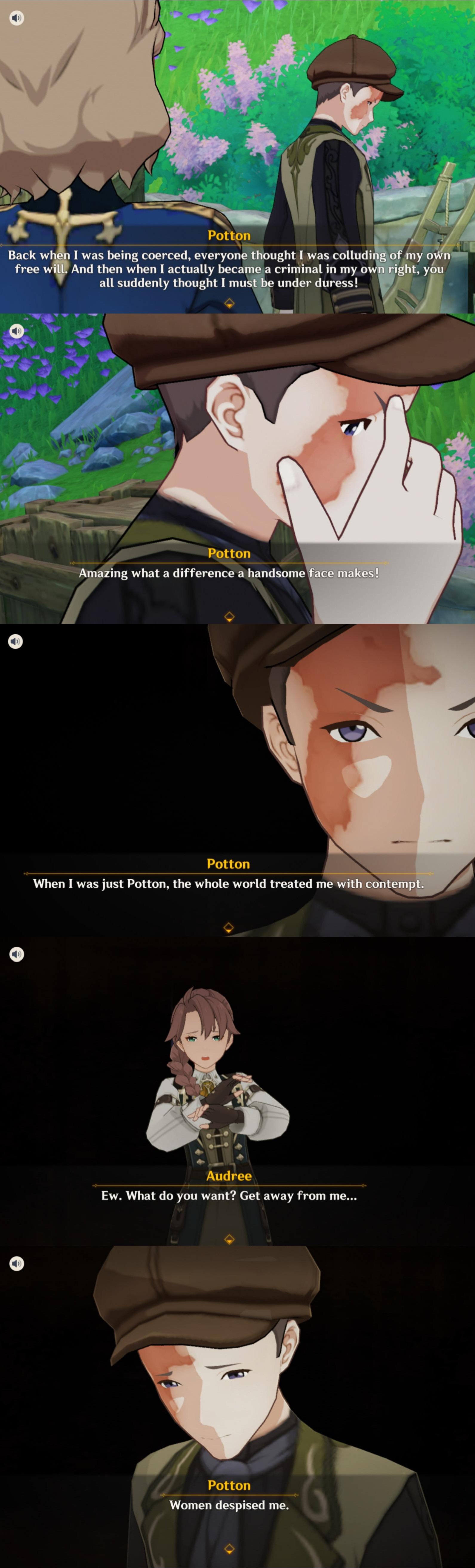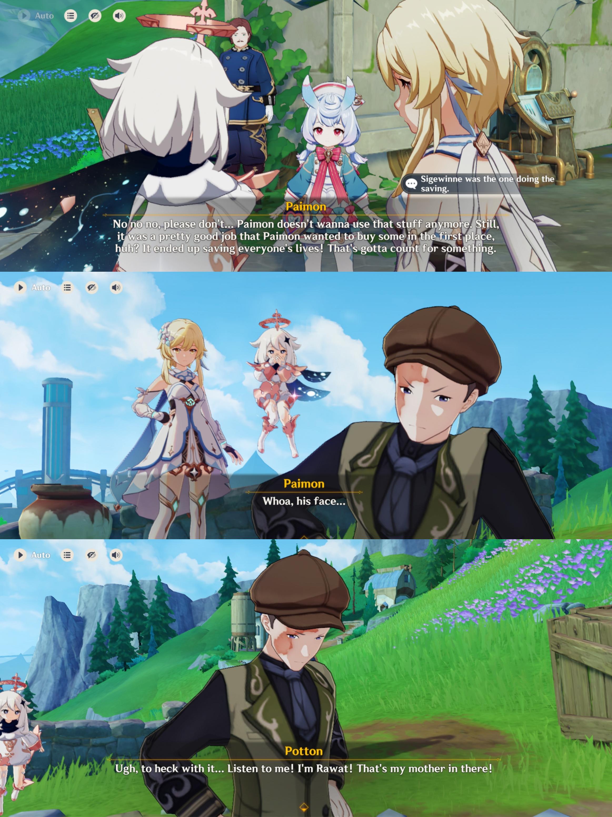 Paimon trying to steal credit as usual.Huh, burn scared face model, pretty cool, i only remember the scarred faces from arles SQ back during font.And least obvious twist ever