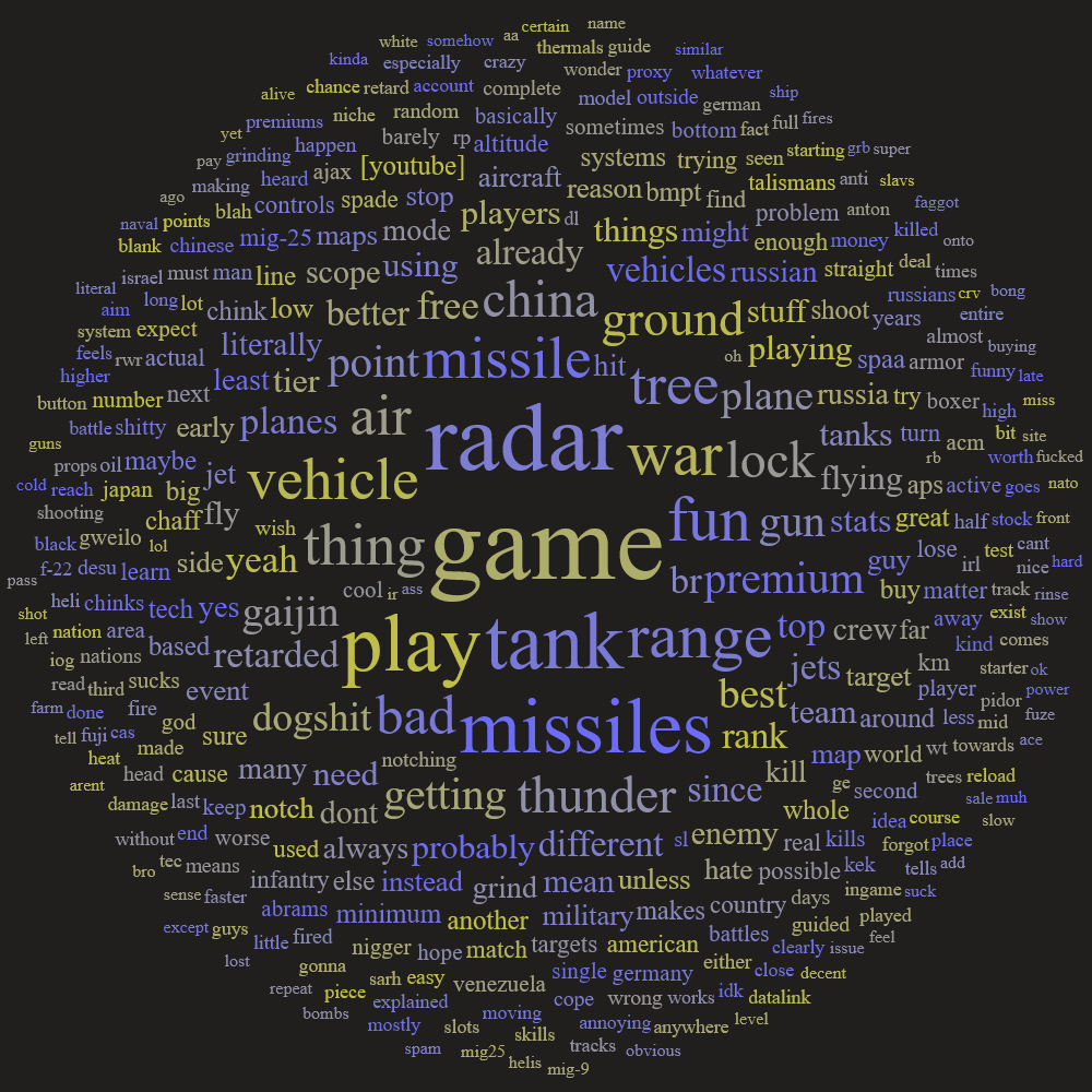 High tier jets and top tier ARB has become completely unfun between the premium/event vehicle braindead niggers playing and BR compression.I've had more fun fights and memorable moments in late props and korean eta jets recently.