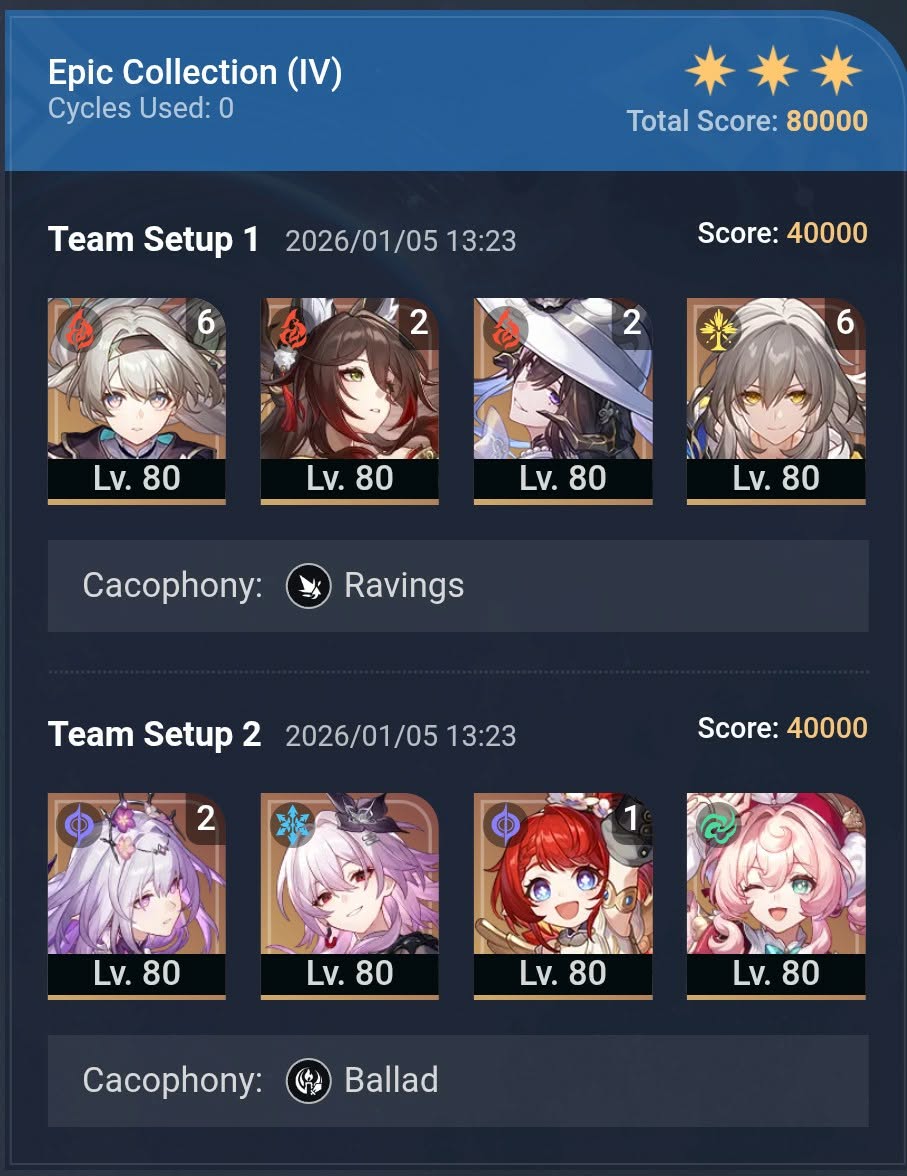 here is my clear bros, got nothing stronger to hit 80k but what can I do. tried sustainless with ruan mei but hoolay keeps killing people and I don't want to reset 30 times